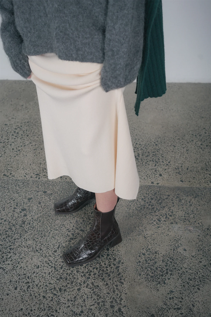 FIT AND WEARABILITY: Magda fits true to size, but if you're in-between sizes we recommend sizing down. A 70mm block heel for all day comfort. The shaft height of the boot leg is approximately 190mm. Embossed leather can sometimes feel rigid at first, but softens with wear.