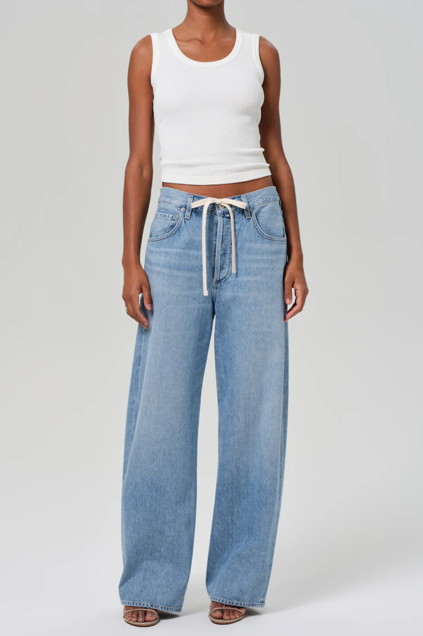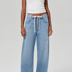 The Brynn Drawstring Trouser is the unofficial beach jean—relaxed, effortless, and made for sun-soaked days. Crafted from 100% regenerative cotton denim, it features a comfortable drawstring waist and an easy, laid-back fit. Pair it with tonal separates or a breezy tank for a look that moves seamlessly from the sand to the street.