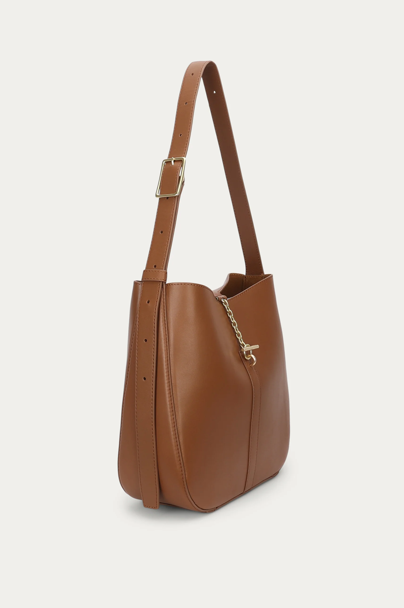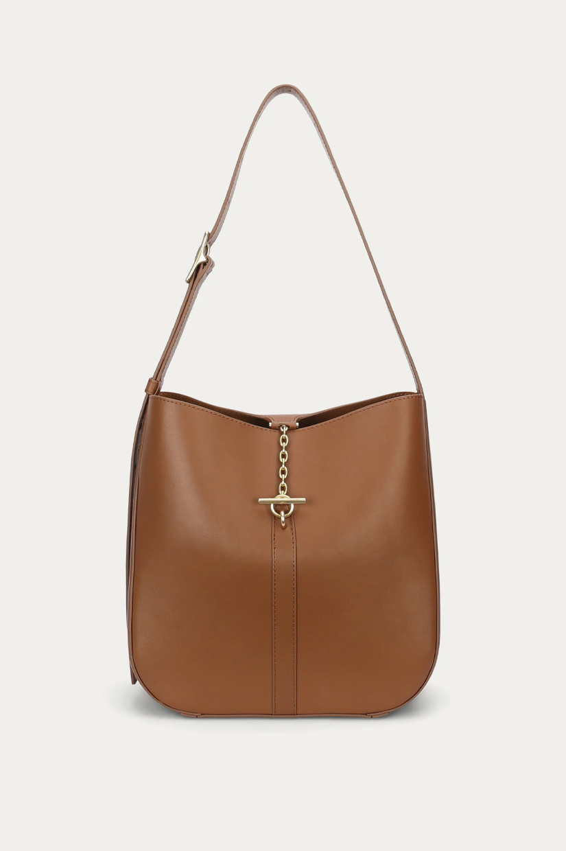 Mr Foldabit in Driftwood is a structured tote, crafted from Calf Nappa with signature brass detailing. He features a chain and T-bar closure, an adjustable strap with a distinctive buckle, and a velvety suede interior with a detachable zip pouch.