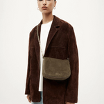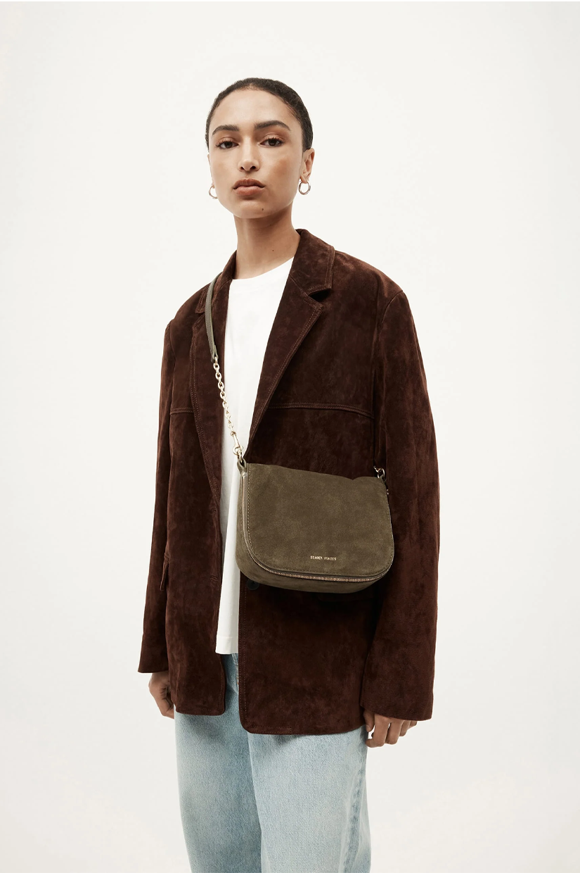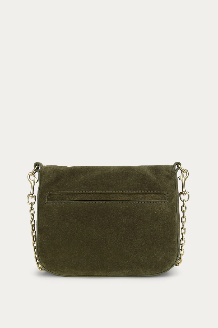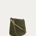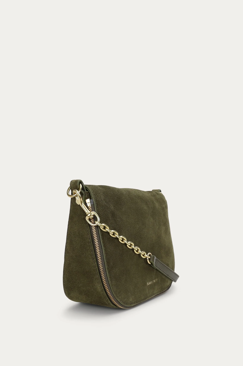 Mr Mini Chain Mail in Kale is crafted from soft Calf Suede and features an adjustable brass chain strap. With a full zip closure and back zip pocket, he offers refined practicality for everyday essentials.