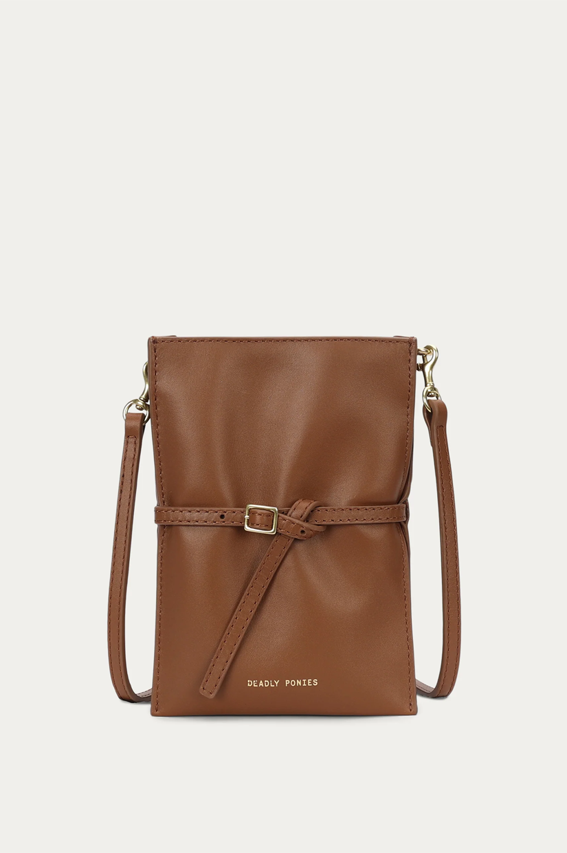 Crafted from Ironed Calf Nappa, Mr Penny Pouchette in Driftwood features a compact silhouette with leather strap detailing and a front buckle accent. A detachable strap offers versatile styling, while a back slip pocket keeps essentials within easy reach.