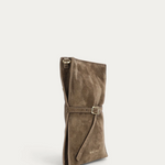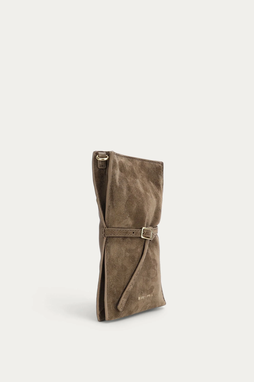 Crafted from soft LWG-certified Calf Suede, Mr Penny Pouchette in Dune offers a compact silhouette with leather strap detailing and a front buckle accent. A detachable strap allows for versatile wear.