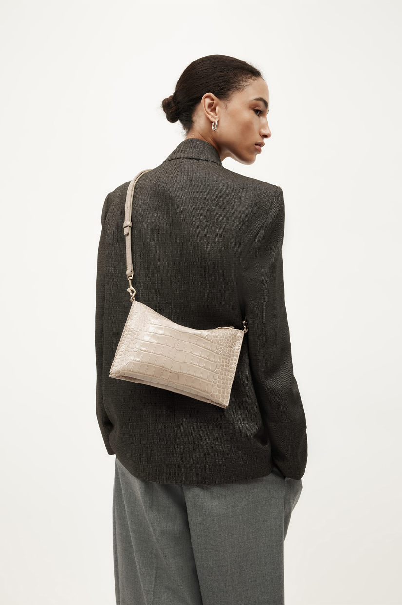Croc Embossed Calf Leather, REACH Certified Cotton Lining, Brass Hardware.