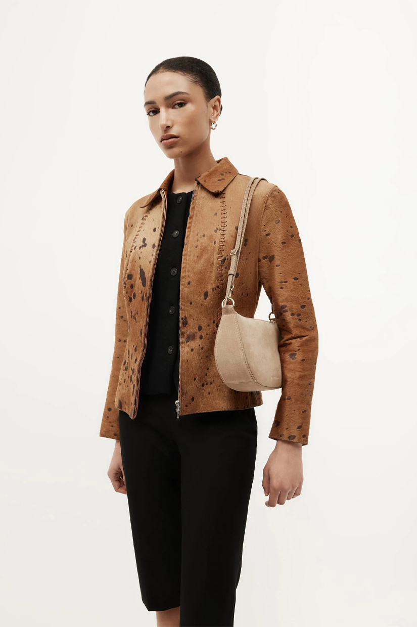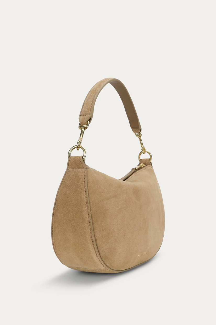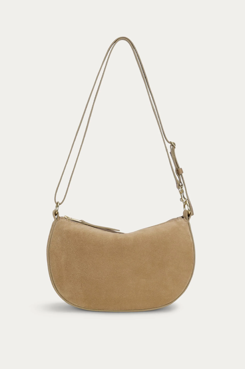 Petite in stature, Mr Sling Micro in Oat is crafted from soft Calf Suede. With a detachable top handle and adjustable strap, he offers versatile styling, while internal pockets and a brass zip closure keep essentials secure.