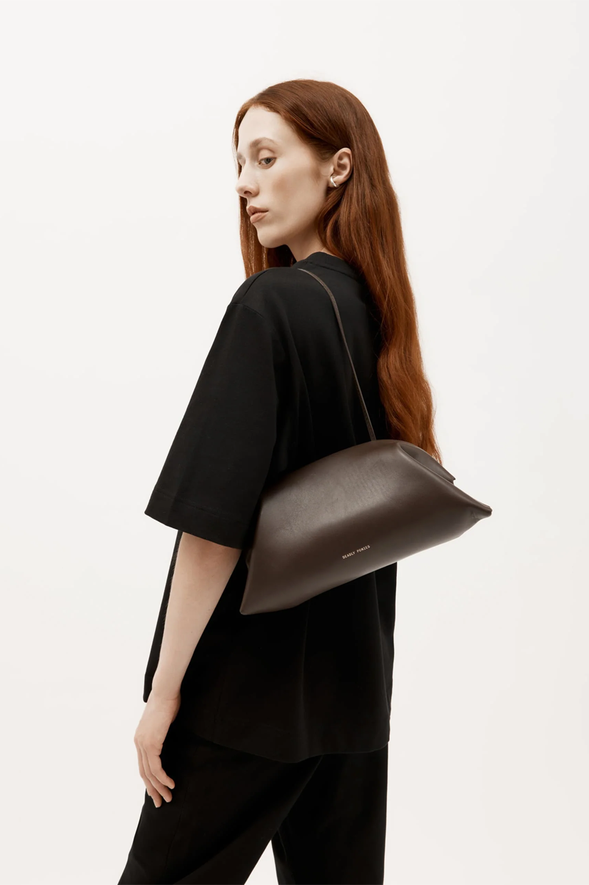 Mr Vault in Java is a clutch-style bag featuring a soft silhouette and internal metal frame with a magnetic closure. Designed with a fixed leather top handle that can be tucked inside for versatile styling, he is crafted from LWG-certified Ironed Calf Nappa.