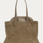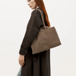Mr Vault Tote in Dune is a structured carry-all, crafted from LWG-certified Calf Suede and trimmed with contrast Ironed Calf Nappa. Designed with dual fixed leather top handles and an internal metal frame at the top edge, secured by a magnetic closure. Features include front and back slip compartments that comfortably fit a 15" laptop.