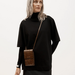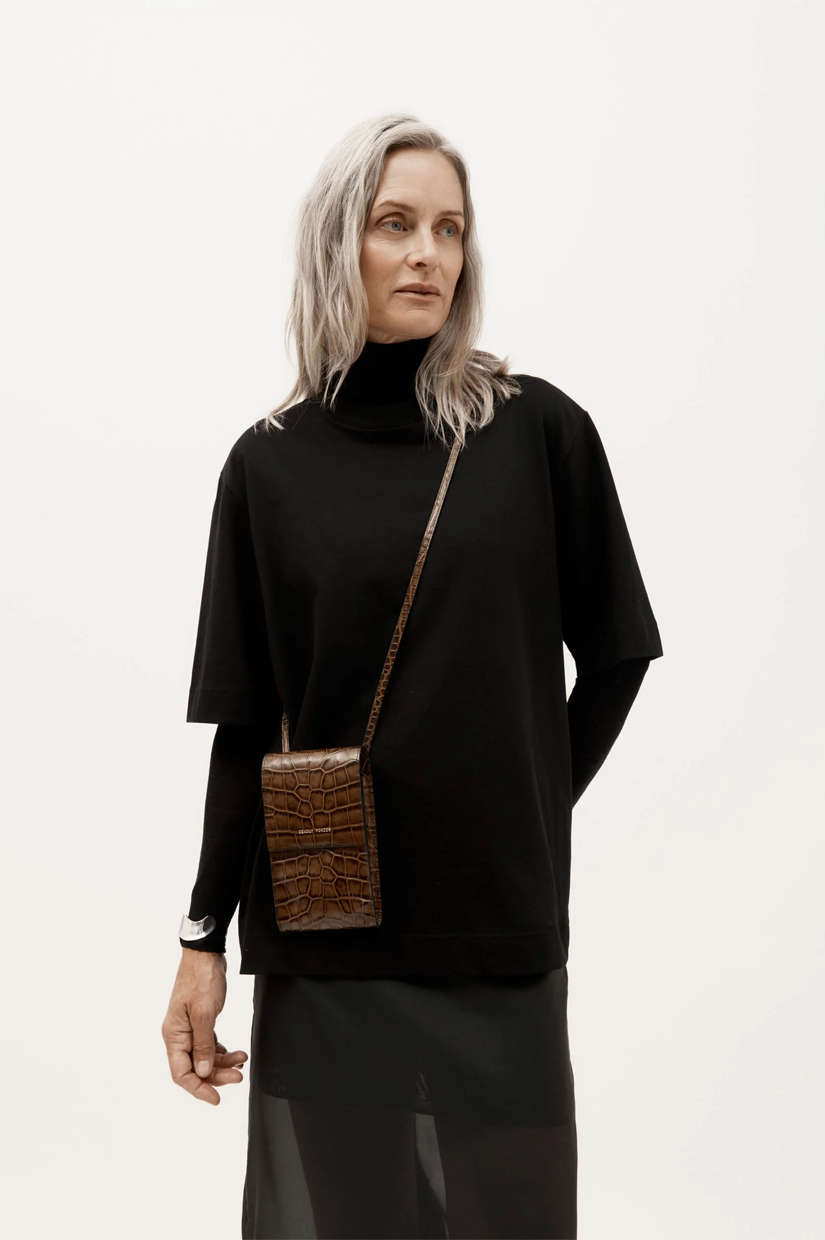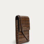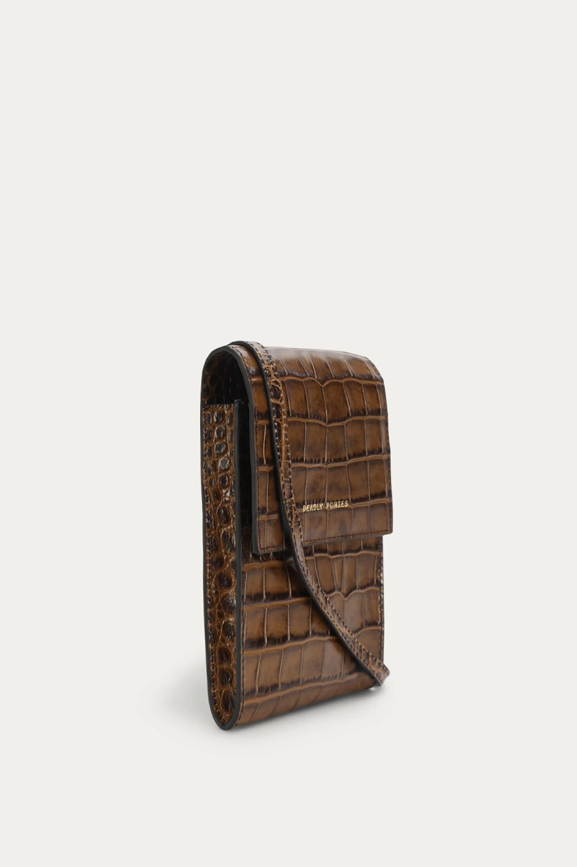 Crafted from LWG-certified Croc-embossed Calf Leather in Toffee, Poucheroo is designed to hold your phone, cards, and cash with ease. A leather strap, two internal card slots, and a slip pocket keeps essentials close and secure.
