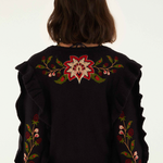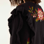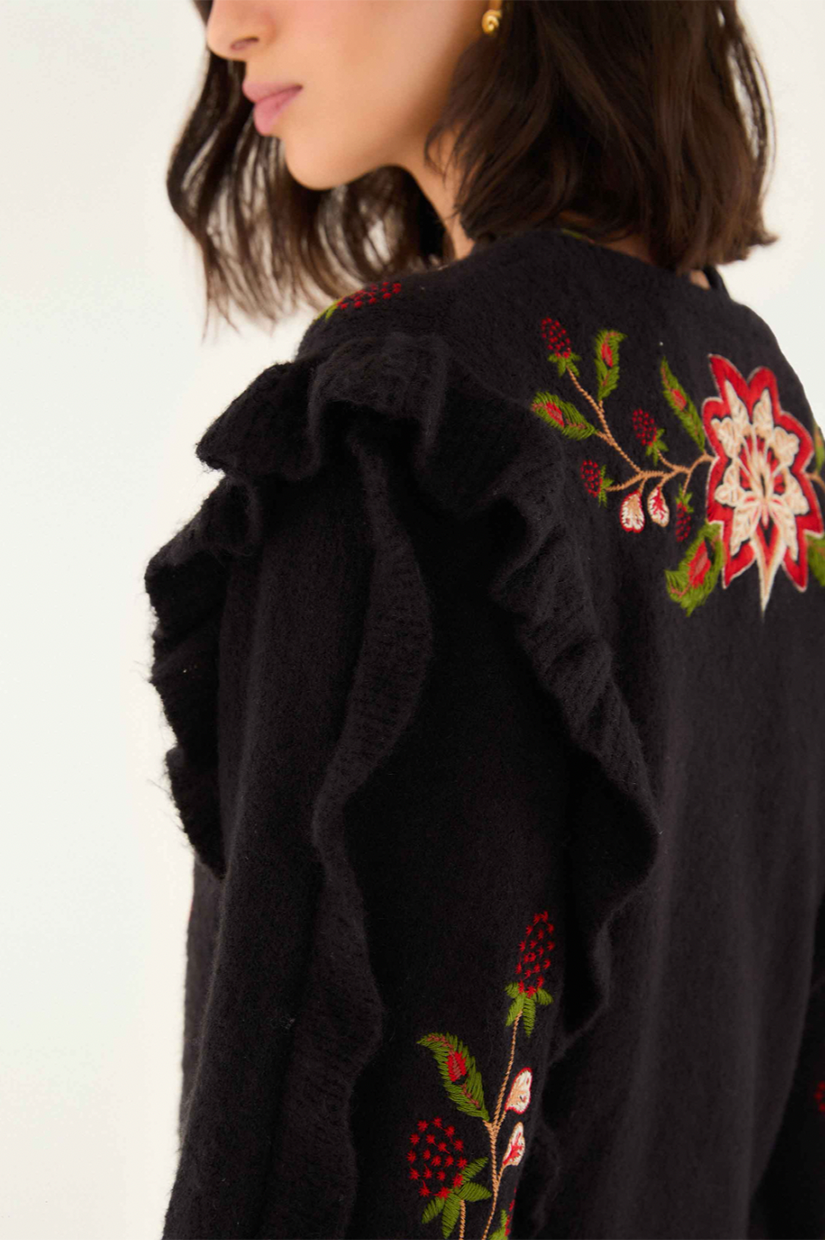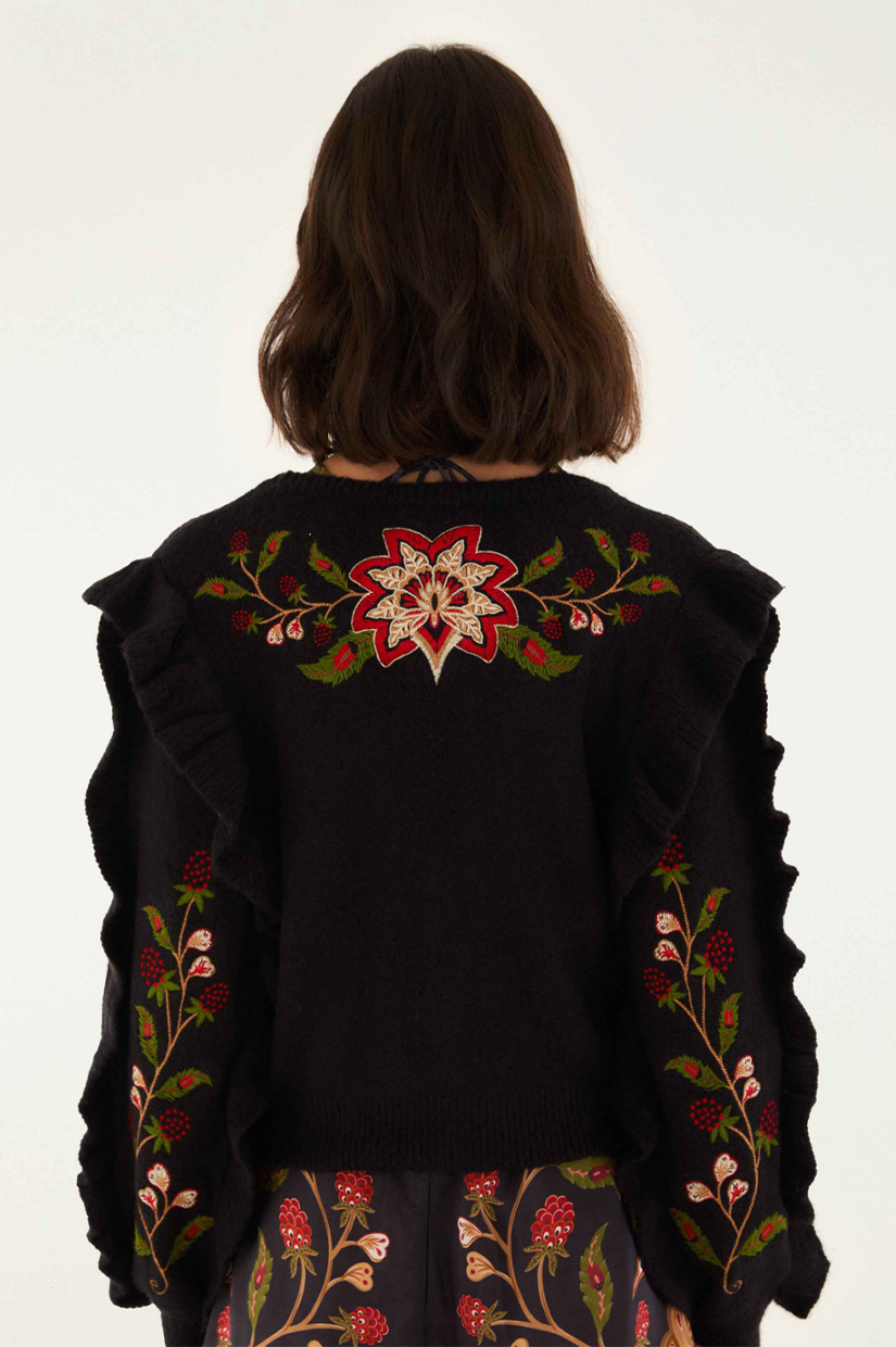 Farm Rio Knit Cardigan Berry Embroidery Black