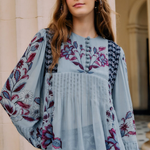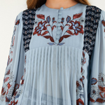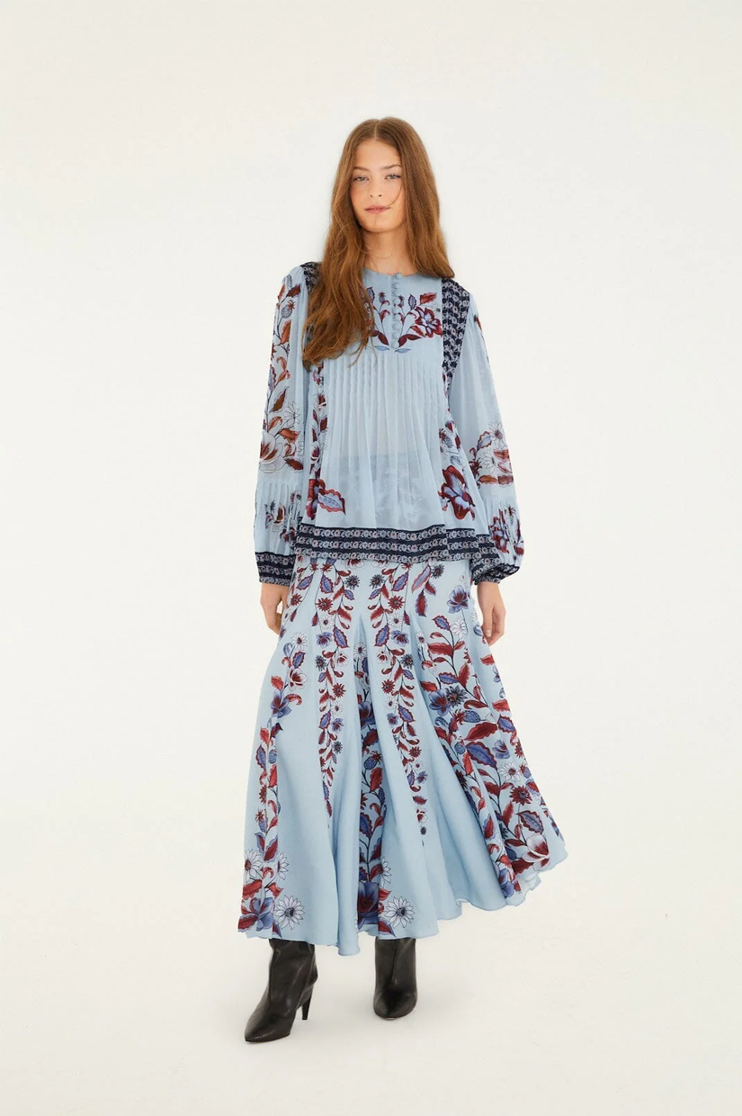 Farm Rio Long Sleeve Blouse Marcelle Soft Blue