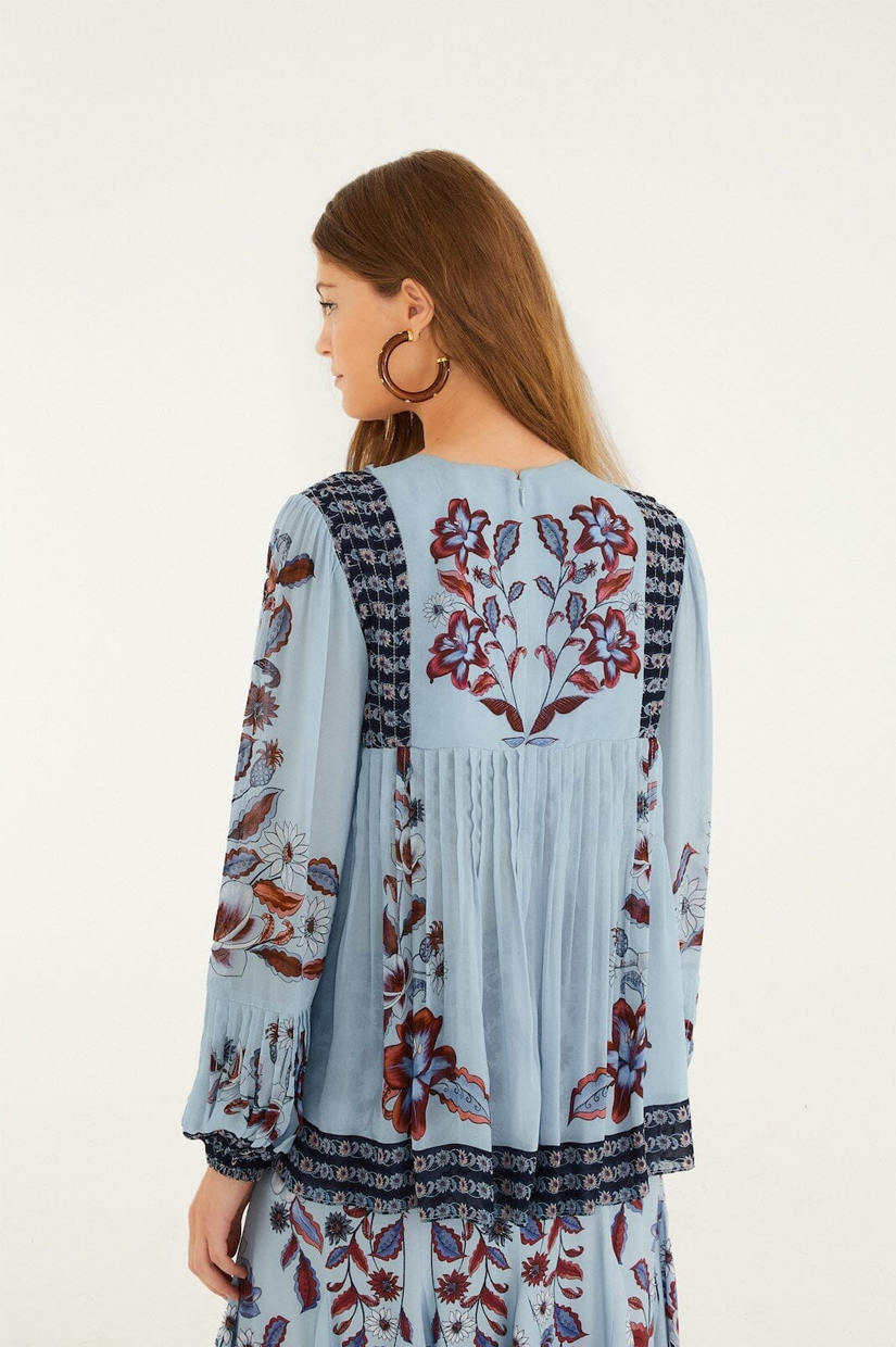 Farm Rio Long Sleeve Blouse - Marcelle Soft Blue