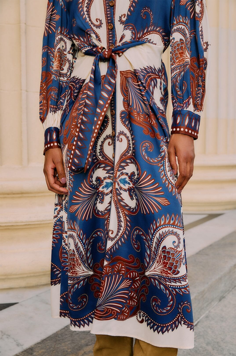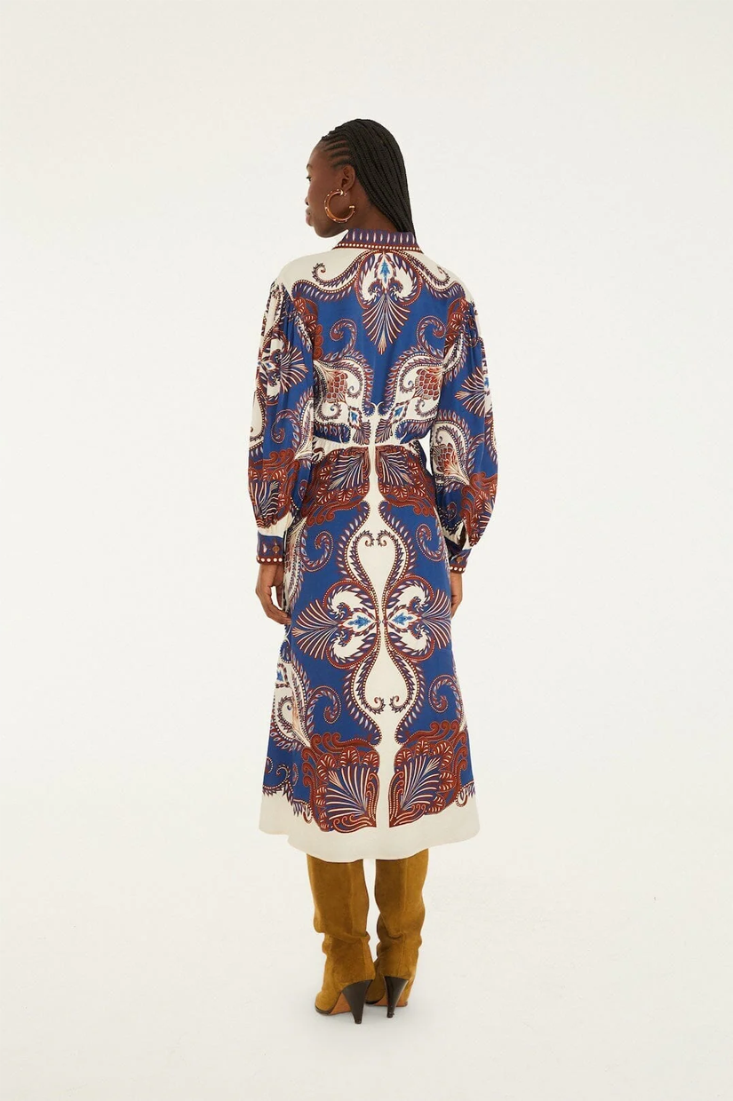 Farm Rio Midi Dress - Arabesque Scarf Blue