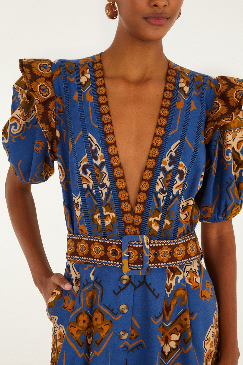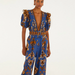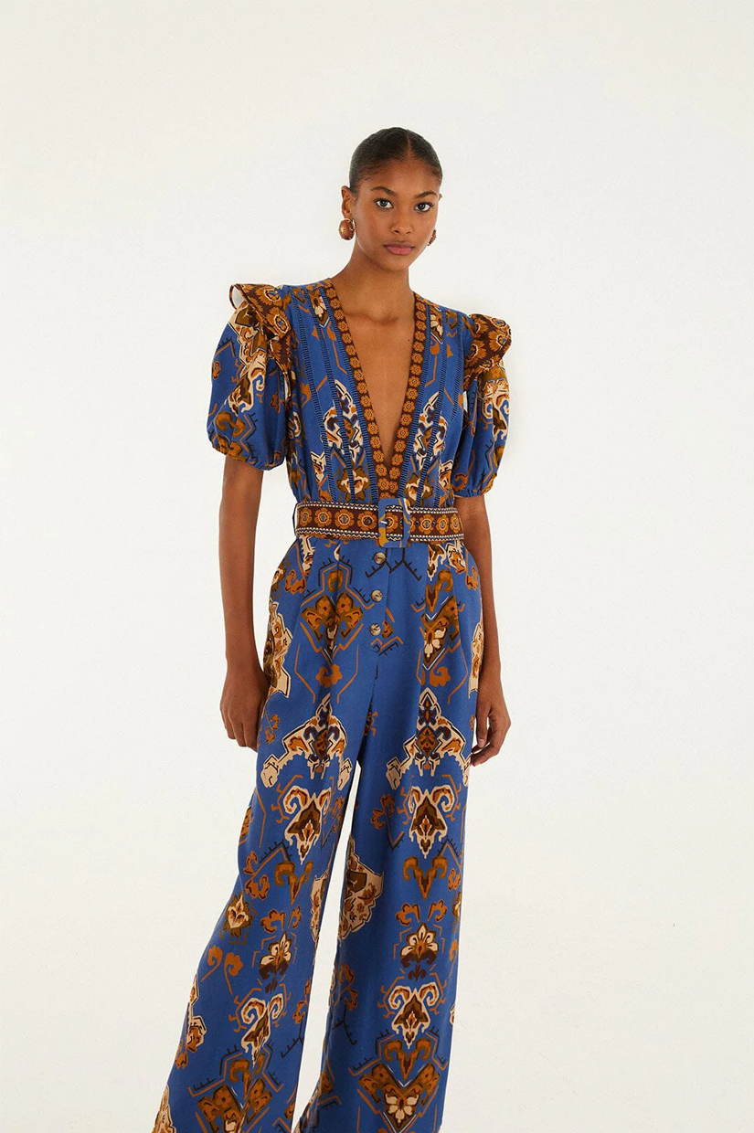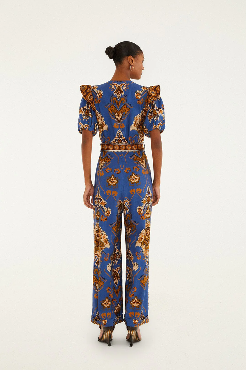 Farm Rio Ornament Floral Jumpsuit - Blue