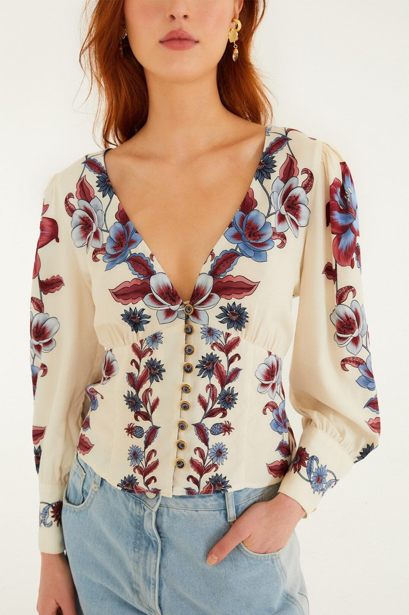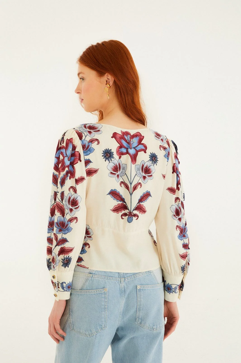 Farm Rio Short Sleeve Blouse - Malu Winter White