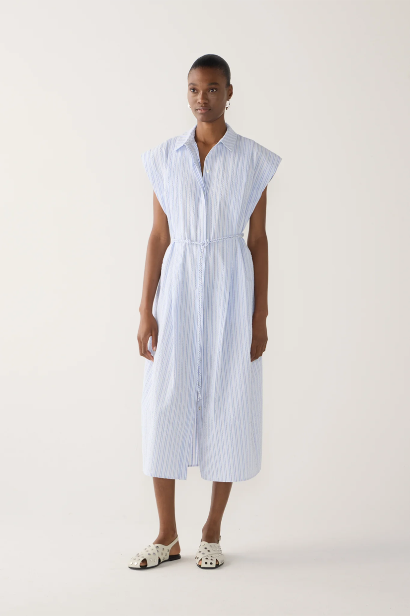Foemina Mona Dress Blue Stripe Seersucker