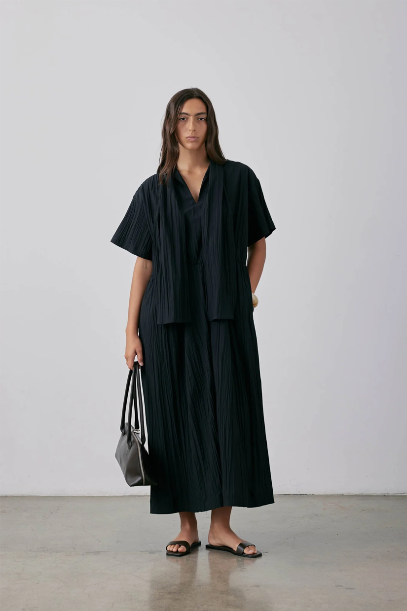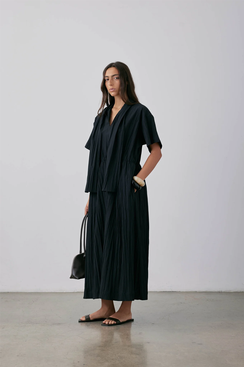Elevate your style game with the Dale Dress SS25. Made from luxurious crisp pleated cotton, this dress features a versatile scarf for endless styling options. Enjoy high-quality comfort with a lightly elasticated waist and panelled pleated skirt. Upgrade your wardrobe effortlessly with this must-have piece.