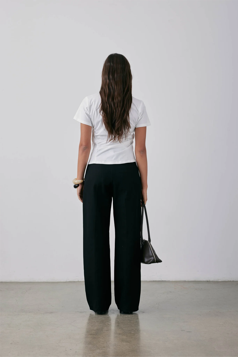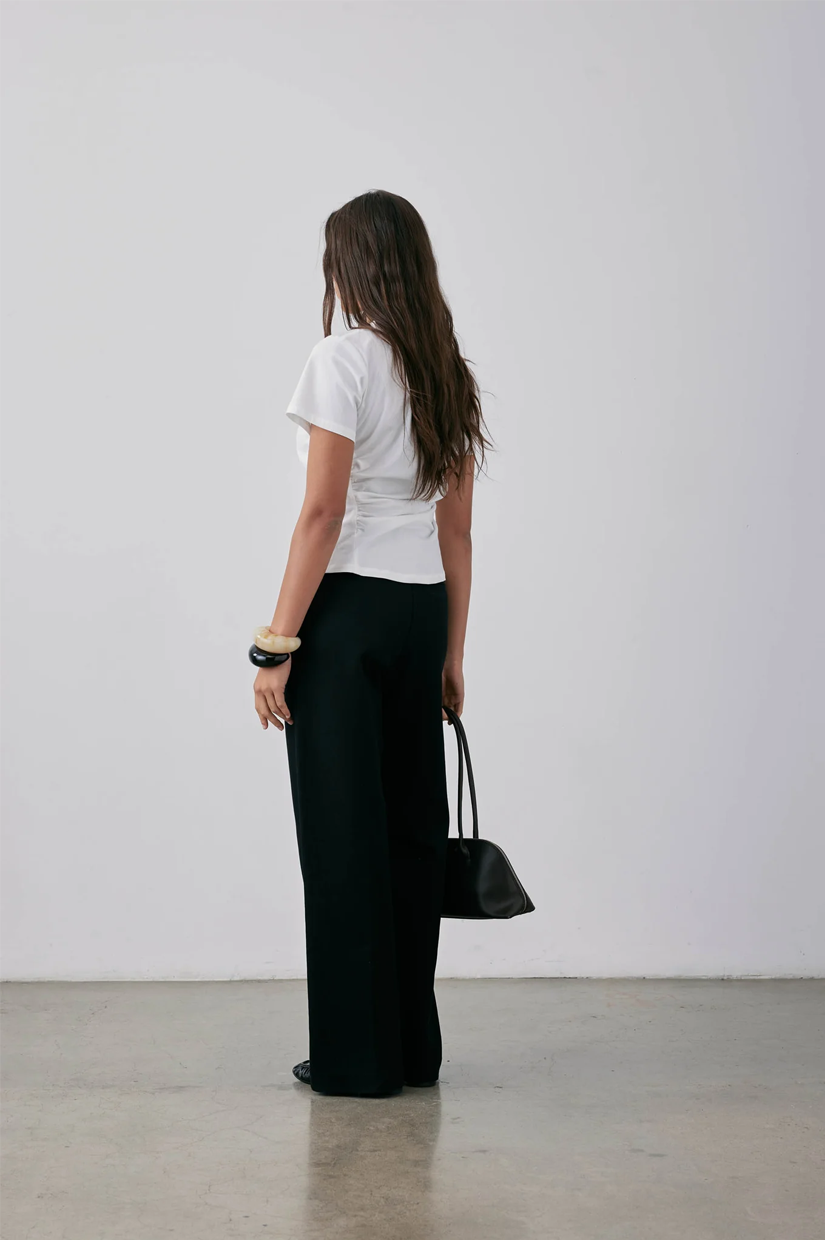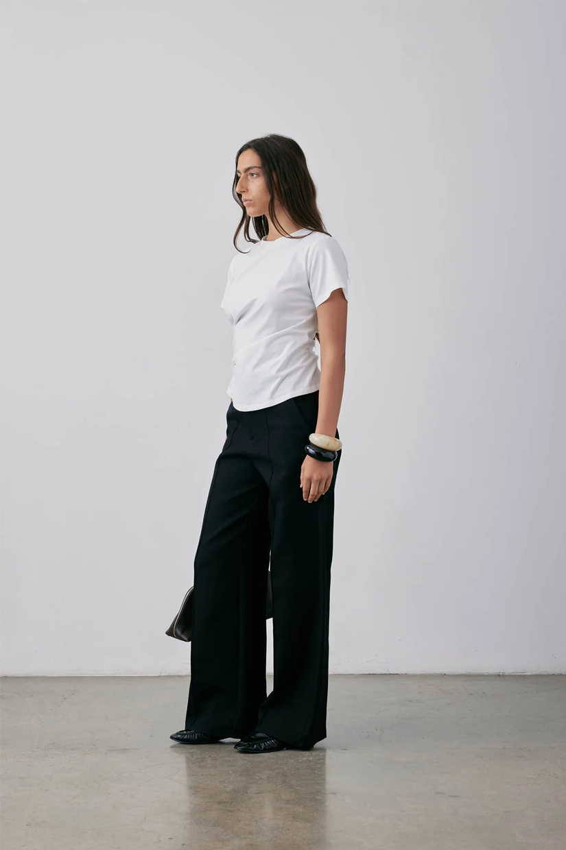 Upgrade your wardrobe with the Gregory Miriam Top. Made from a superior Japanese cotton blend, this tee features twisted side seams and gathered seams for a stylish touch. The high-quality fabric is both comfortable and elevated, making it a must-have for any fashion-forward individual. Perfect for casual outings and versatile enough to be dressed up or down.