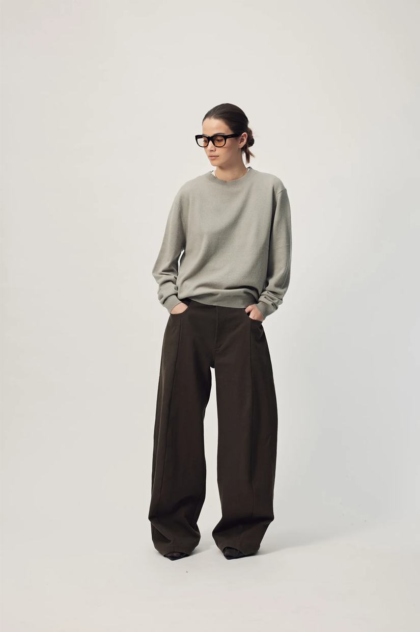 The Muriel Jean is a curved, wide leg trouser designed for both style and comfort. The strategically placed seams at the centre front and back provide a flattering shape, while the side entry pockets, belt loops, and welt pocket add functionality. Expertly crafted for a polished look, these pants are perfect for any occasion.