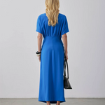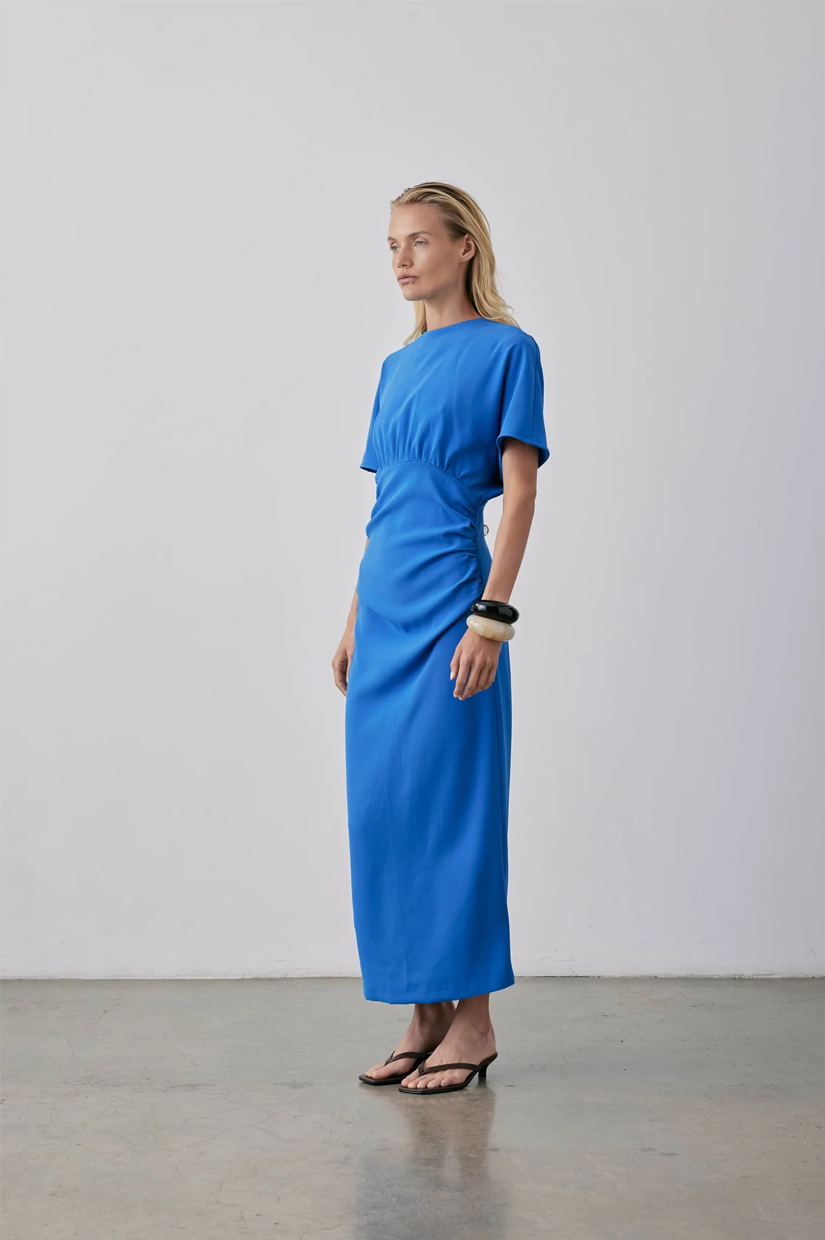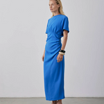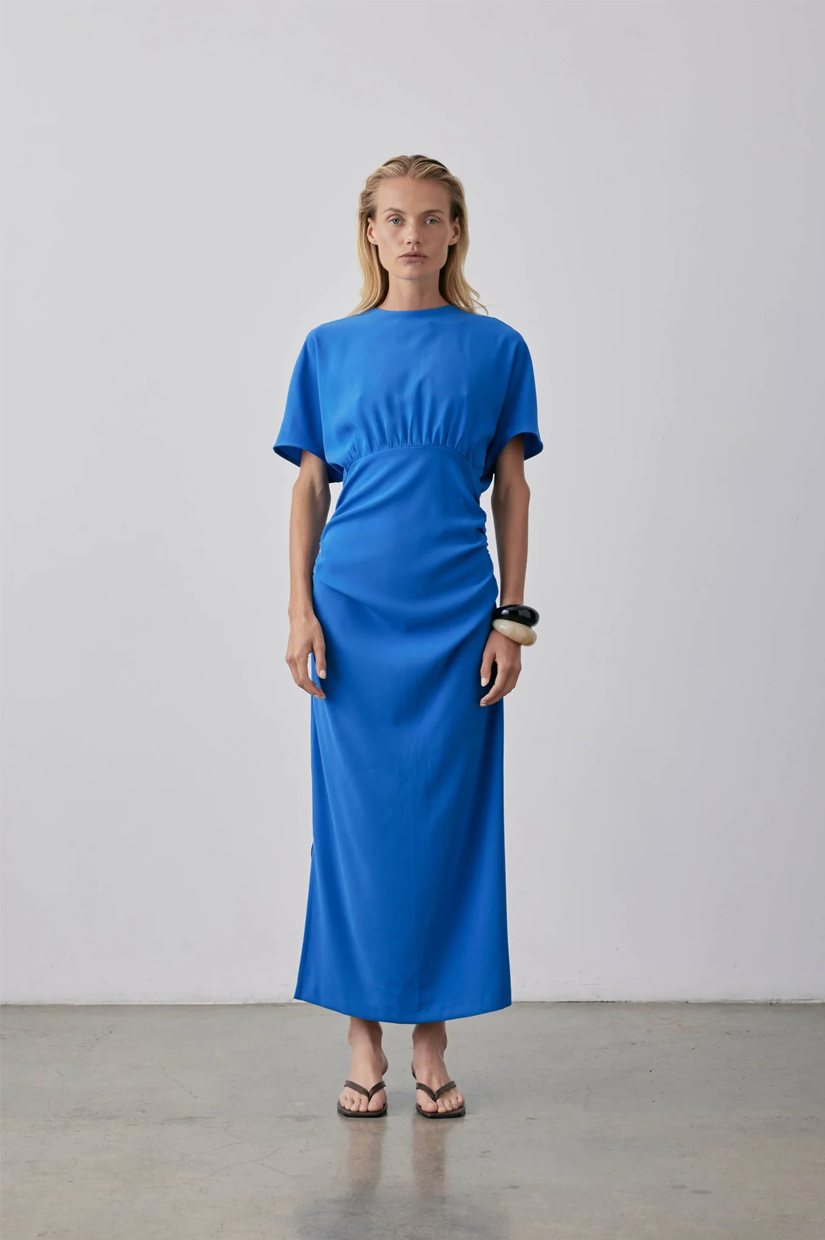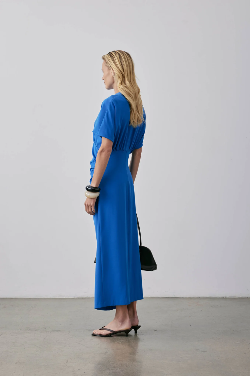 Elevate your wardrobe with the Randi Dress from the Gregory collection. This high-quality triacetate dress boasts a round neckline, dolman sleeves, and a fitted waistline for a flattering silhouette. With subtle side seam tucks and a chic design, this dress is the perfect addition to your stylish wardrobe.