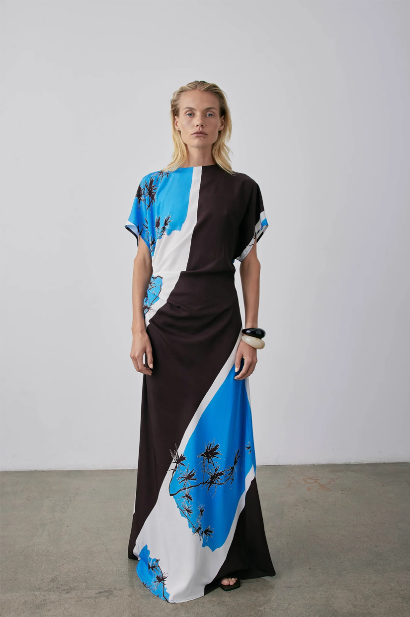 The Terra Dress SS25 features a full-length silhouette crafted in an exclusive print, offering a distinctive and elegant look. Designed with a gathered detail at the back, it enhances the dress’s fit and adds subtle texture. The cap sleeves provide a refined finish, balancing coverage with a light, airy feel. This dress combines sophisticated design elements for a polished and timeless wardrobe addition.