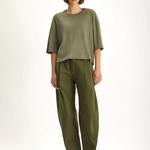 The Archive Tee is a cropped, boxy T-shirt crafted from heavyweight vintage cotton-linen jersey, combining durability with a soft, textured handfeel. The breathable cotton-linen blend provides effortless everyday comfort, while the relaxed drape evokes the timeless appeal of a classic vintage tee. Finished with a ribbed crew neckline and twin-needle stitching at the hem and sleeves, this tee is a versatile wardrobe essential.