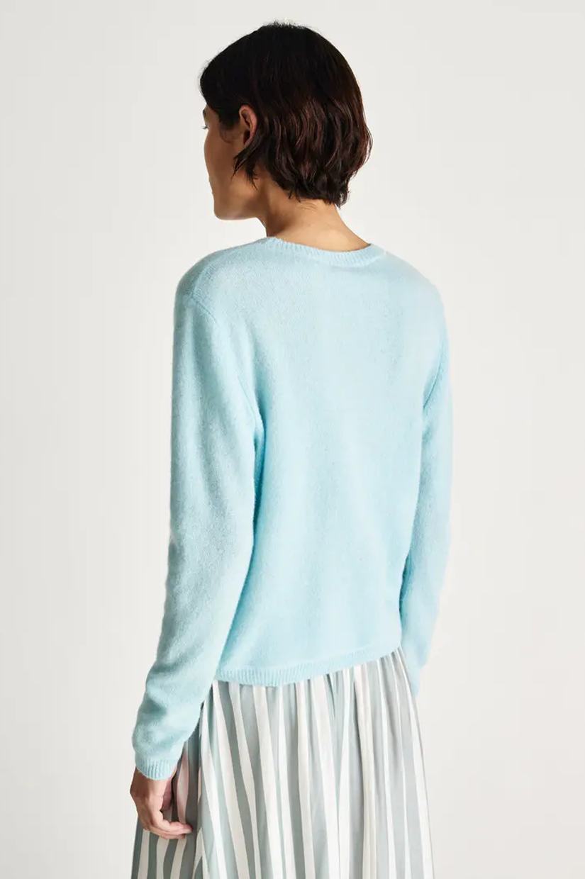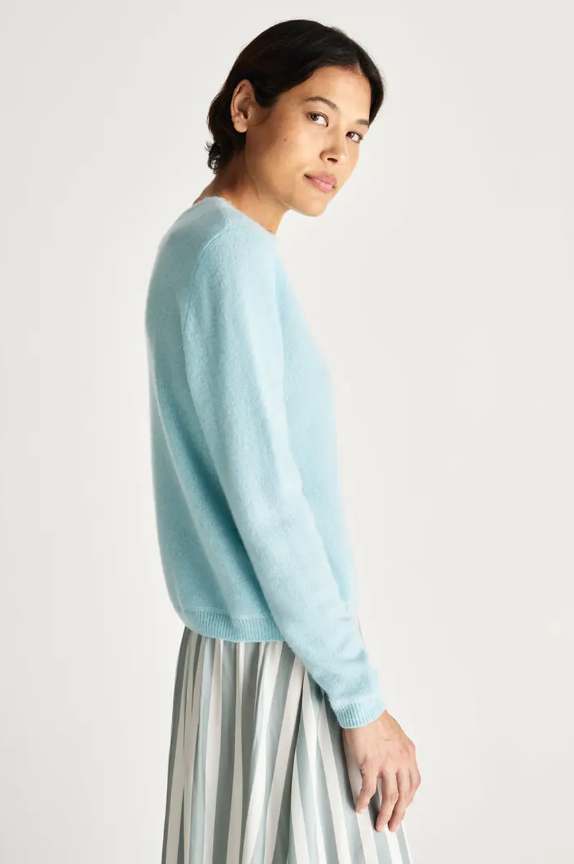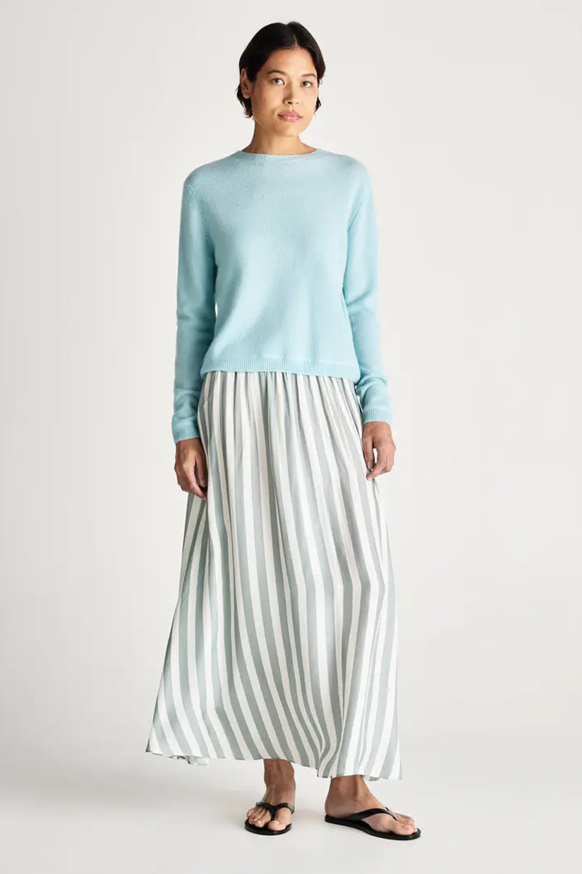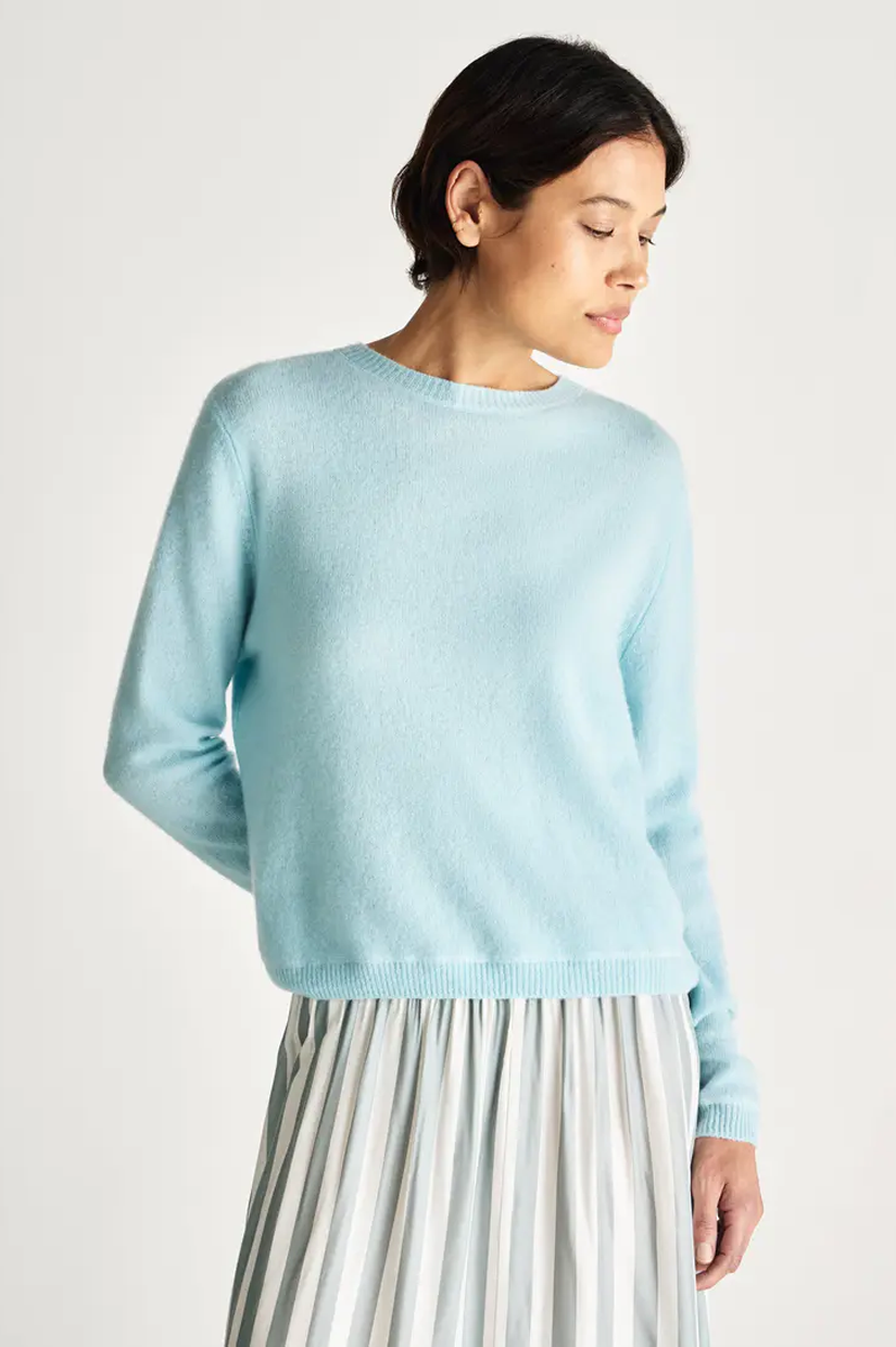 Our signature lightweight women's cashmere sweater is the ultimate transeasonal essential. Made from luxuriously soft cashmere, it's designed to be worn on its own or as layering piece. Featuring a fine crew neckline and a relaxed silhouette that falls at the hip, this versatile piece blends comfort with understated elegance. Pair it with a fluid silk, simple skirt or thrown over shoulders for an effortlessly refined summer evening look.