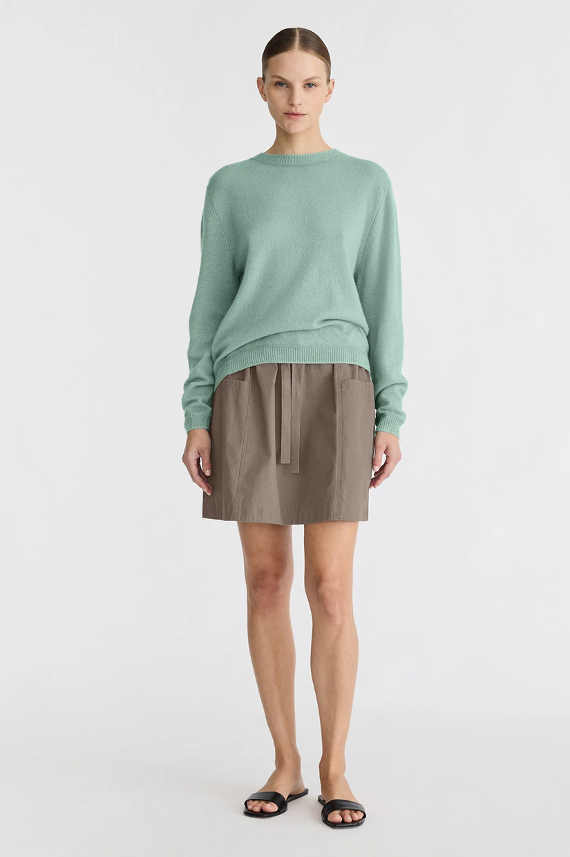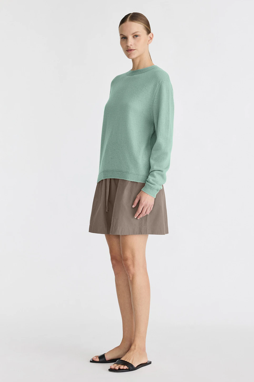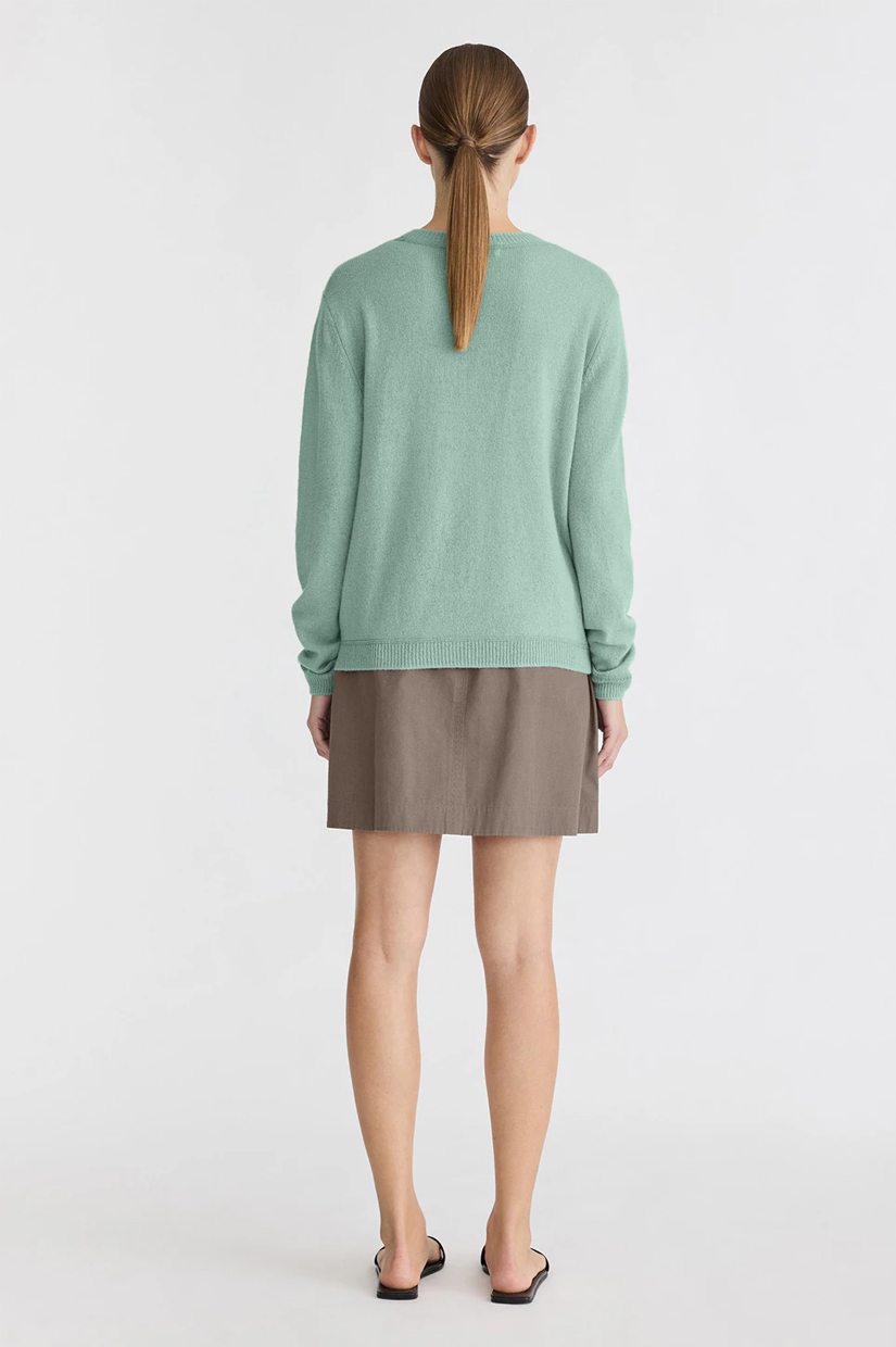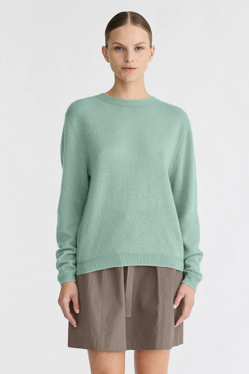 Our signature lightweight women's cashmere sweater is the ultimate transeasonal essential. Made from luxuriously soft cashmere, it's designed to be worn on its own or layered with ease. Featuring a fine crew neckline and a relaxed silhouette that falls at the hip, this versatile piece blends comfort with understated elegance. Pair it with fluid silk trousers or a simple skirt for an effortlessly refined everyday look.