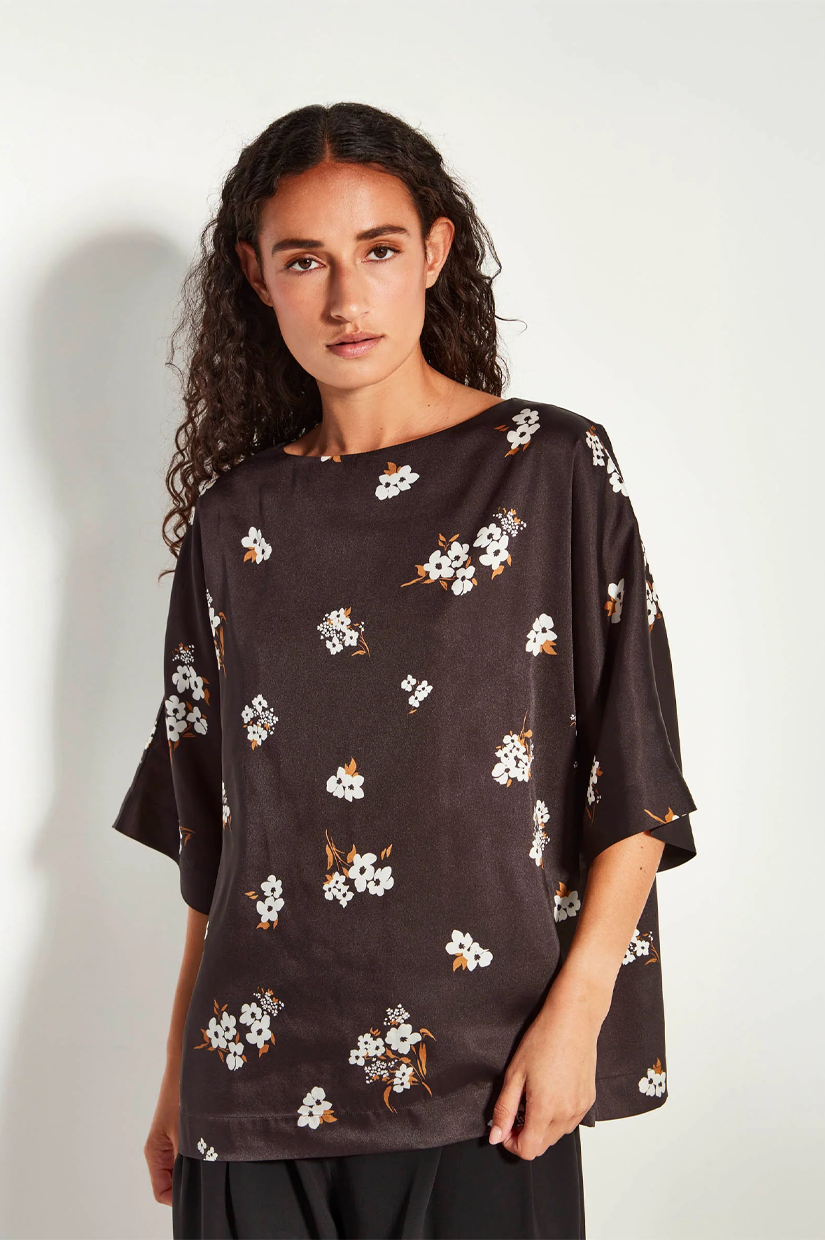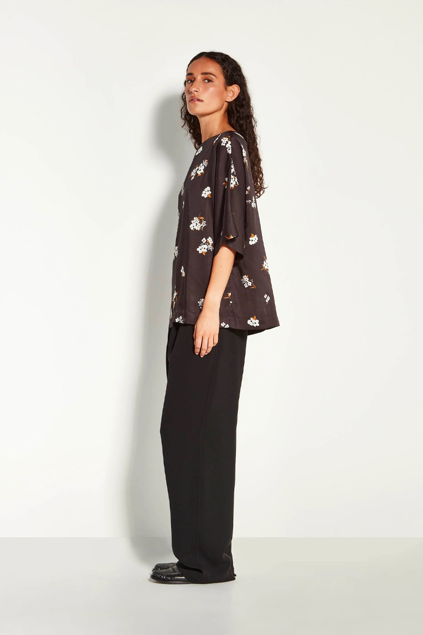 The new Nami T in Moonflower Twill is an effortlessly modern take on everyday tailoring. Its clean boat neck and wide kimono sleeves make it an easy piece to wear and style.