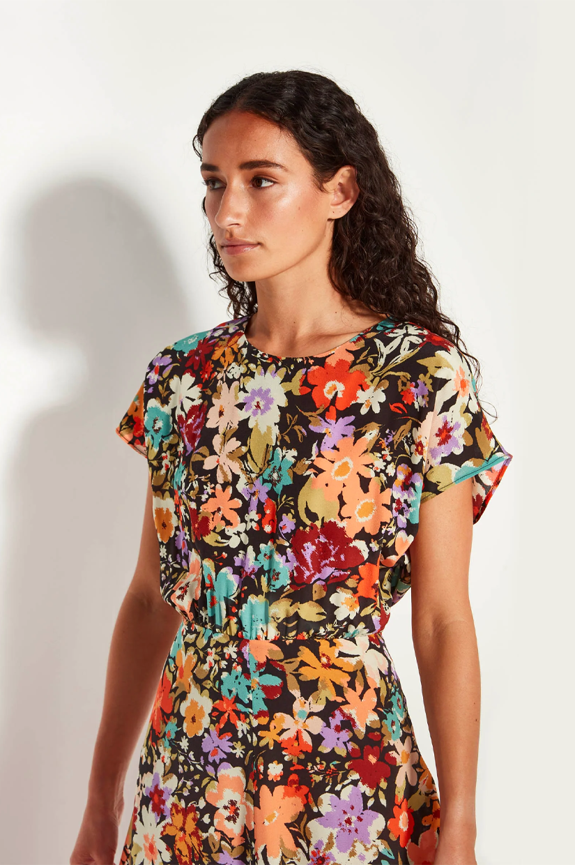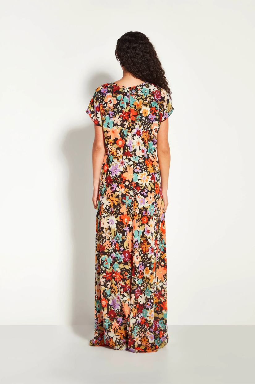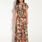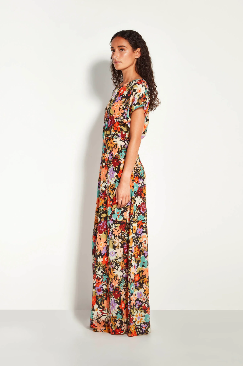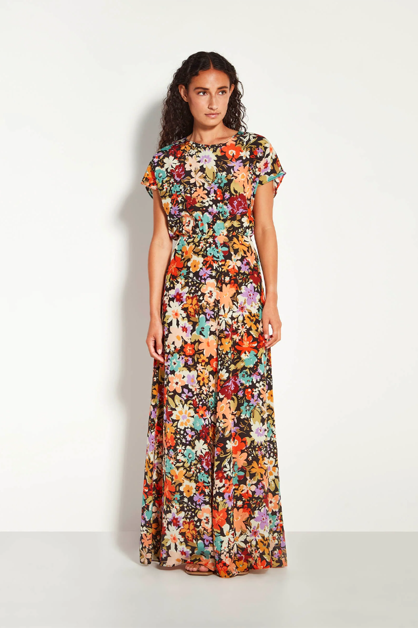 The Paloma Dress is a flattering maxi-length style, featuring cap sleeves, a crew neckline, and gathered waist detailing. Crafted from our signature print, Petal Parade Silk CDC, the Paloma is an elegant event piece that is sure to turn heads.