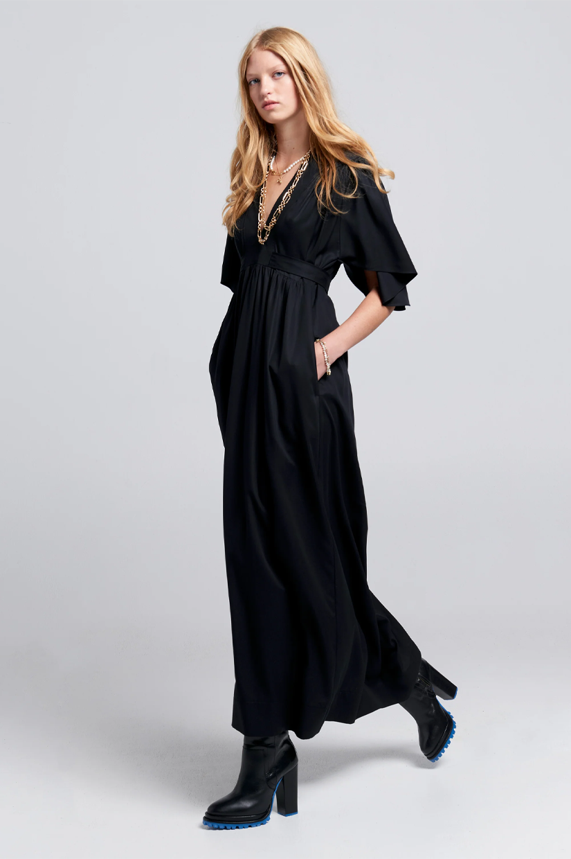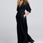 The Jamboree Dress in black Tencel linen blend is the ultimate summer staple. With dual western-inspired yokes, delicate gathering, and a tie-back waist, it’s both flattering and versatile – perfect for both everyday wear and special occasions.