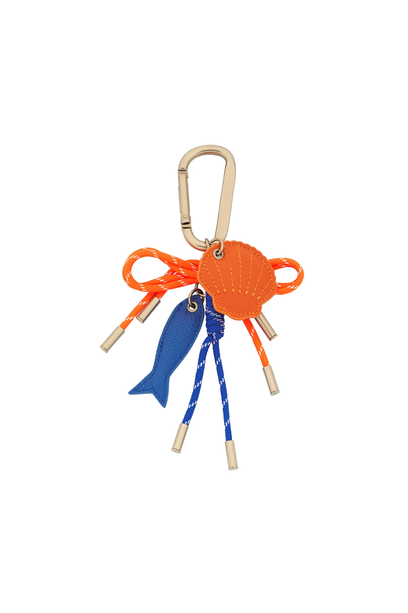 Inspired by nautical adventures, the Marine Carabiner Charm brings a playful maritime touch to your accessories. Crafted from rope, microfibre, and metal alloy in a striking orange and blue combination, it clips effortlessly onto bags, keys, or other essentials. A charming nod to seaside escapades.