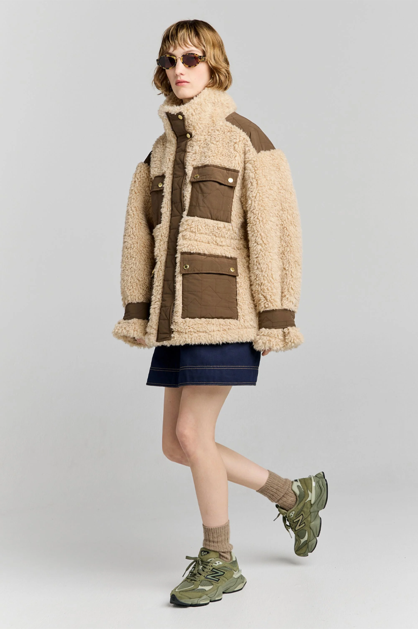 The Summit Jacket is a utilitarian take on a classic oversized fur jacket, crafted in teddy faux shearling for a plush, tactile finish. Contrast panelling brings a modern edge, while an internal drawstring allows for adjustable shaping. The oversized silhouette ensures warmth and comfort, making it both functional and eye-catching – the perfect layer for cold-weather dressing.