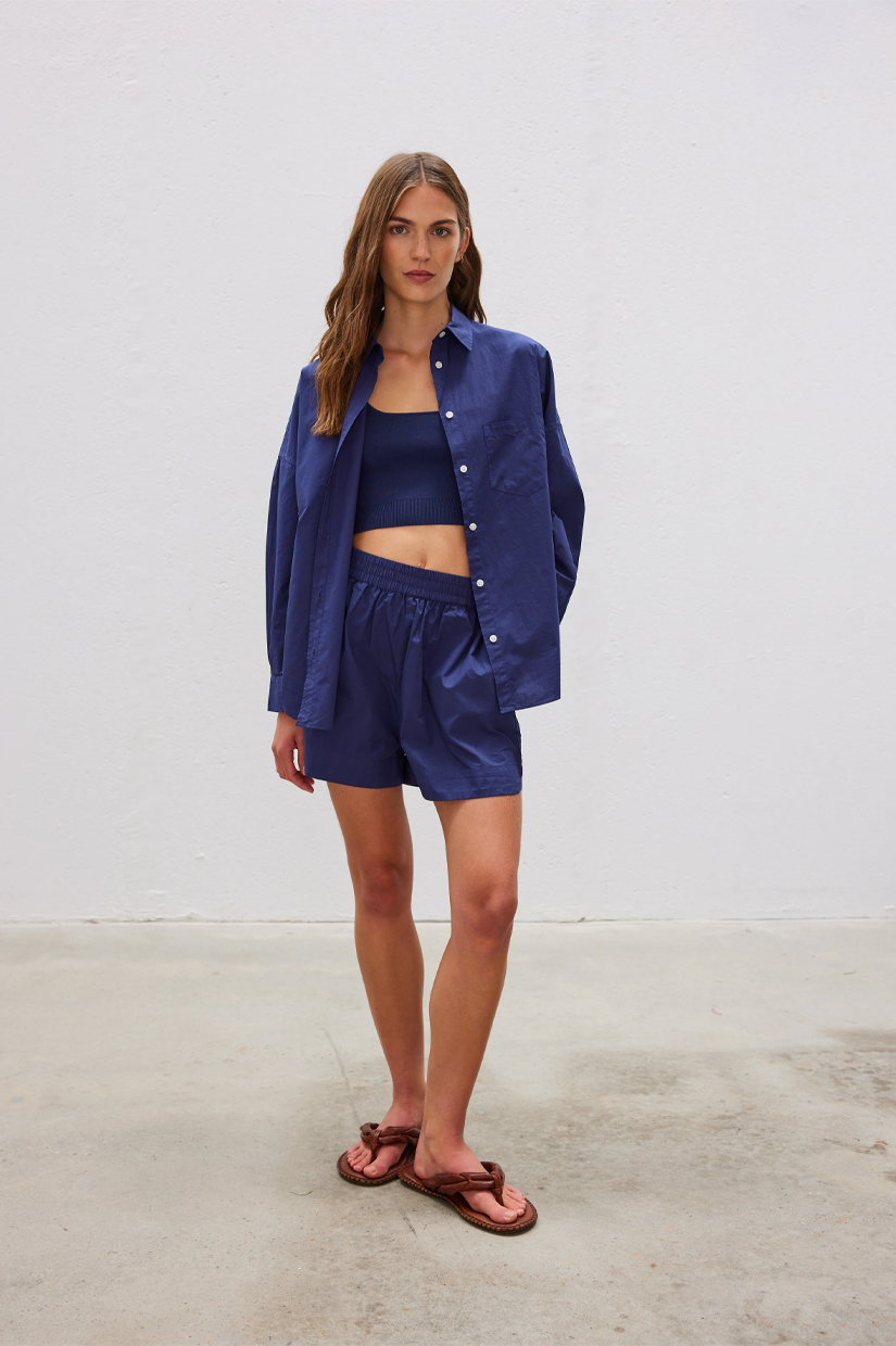 Pair them with a basic tee for a laid-back look or with the matching Chiara shirt. With their effortless design and high-quality fabric, the Chiara Shorts are a must-have addition to your collection.