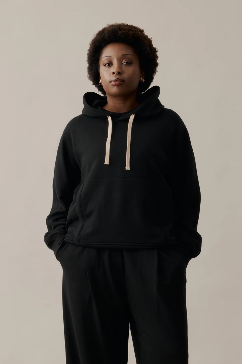 Crafted from our 100% ZQ merino brushed back terry, the Foundation Merino Hoodie offers unmatched comfort with timeless design. This hoodie has a relaxed, slightly cropped fit with slightly dropped shoulders and a kangaroo pocket on the front. It has a set-in front sleeve with a raglan sleeve on the back and a hood featuring a contrast inner using our foundation ZQ merino jersey. A 2 x 2 rib is used for the cuffs and hem and is finished with an embroidered Longform Merino moniker on the left inner sleeve.
