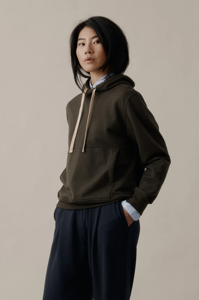 Crafted from our 100% ZQ merino brushed back terry, the Foundation Merino Hoodie offers unmatched comfort with timeless design. This hoodie has a relaxed, slightly cropped fit with slightly dropped shoulders and a kangaroo pocket on the front. It has a set-in front sleeve with a raglan sleeve on the back and a hood featuring a contrast inner using our foundation ZQ merino jersey. A 2 x 2 rib is used for the cuffs and hem and is finished with an embroidered Longform Merino moniker on the left inner sleeve.