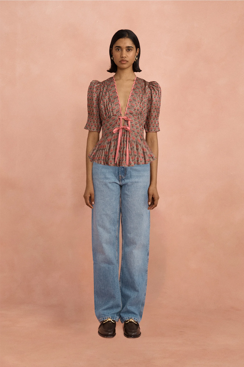 The Boehm top reimagines our best-selling dress into an easy, everyday silhouette. Crafted from lightweight cotton voile, it features the signature pin-tucked detailing through the bodice and cuffs, finished with a delicate grosgrain ribbon at the neckline. A romantic staple designed to be worn effortlessly, day to night.