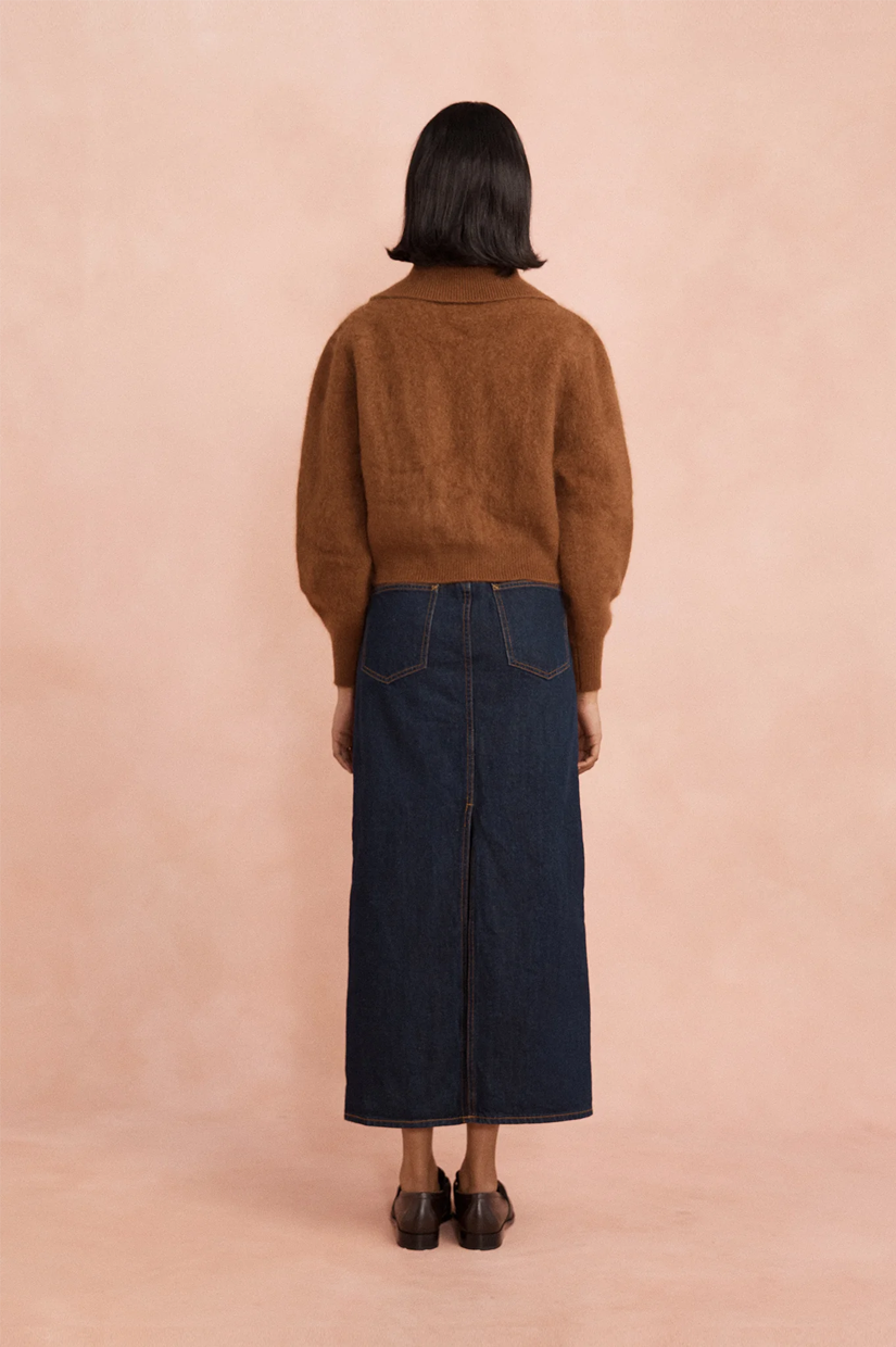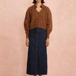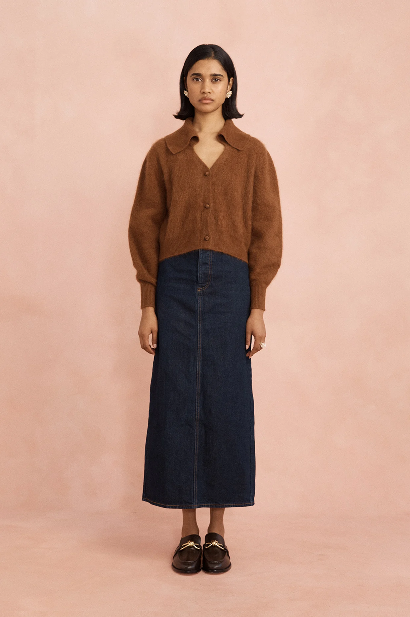 The Sylvie cardigan is a softly nostalgic knit designed to be worn often and layered with ease. Knitted in fluffy wool, it features a gentle collar and vintage-inspired knot buttons, bringing warmth and quiet charm to everyday dressing.