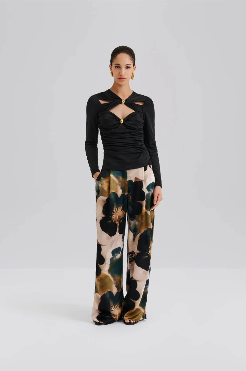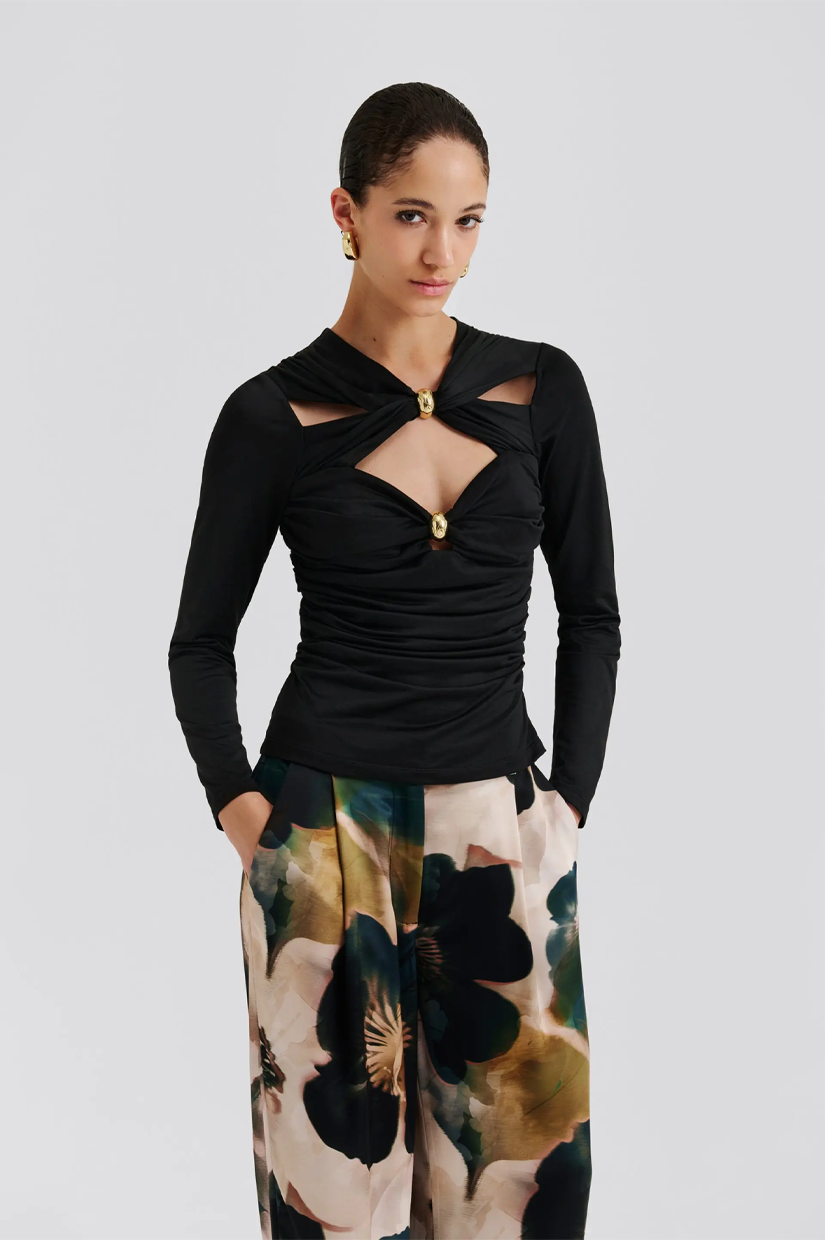 Malina Amela Embellished Long Sleeve Jersey Top Black