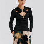 Jersey top with cut-out details and gold-toned hardware.