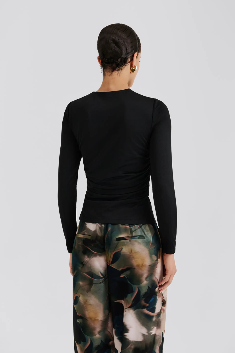 Malina Amela Embellished Long Sleeve Jersey Top - Black