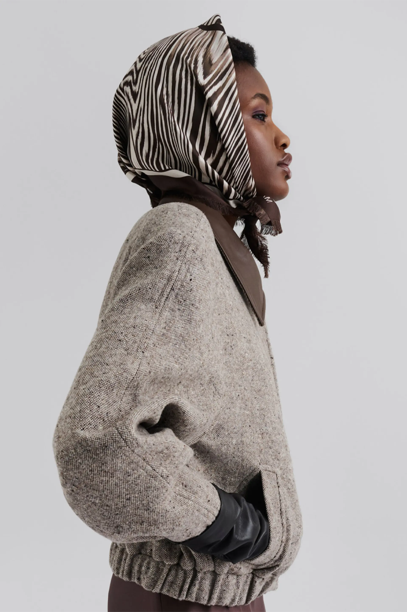 Malina Silk Twill Fringe Scarf - Moire