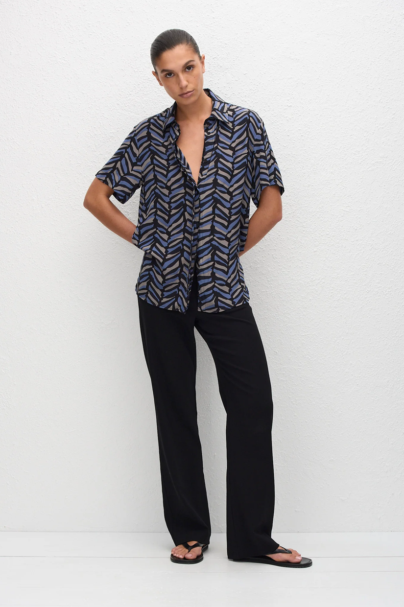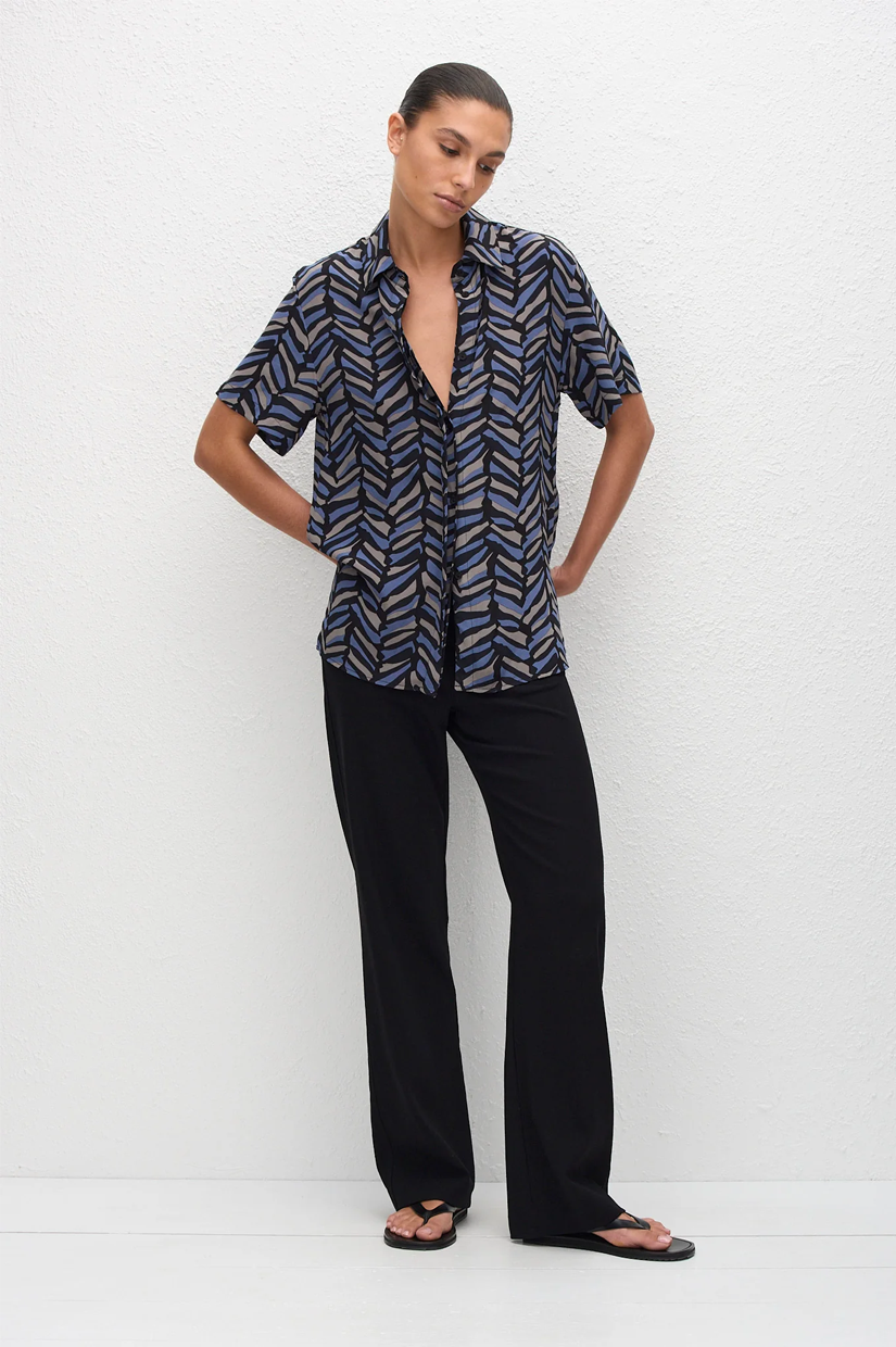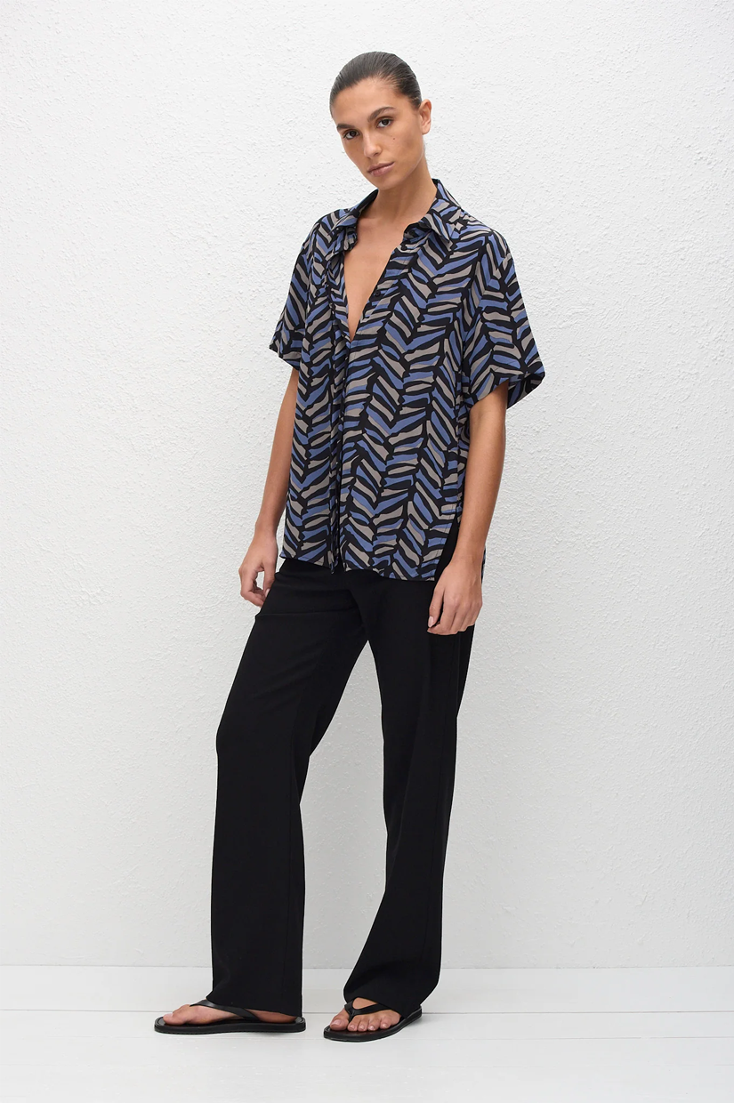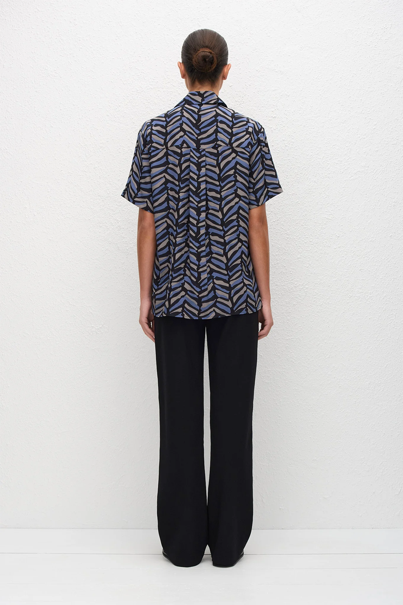 Easy without compromise, this oversized short sleeve shirt was inspired by a vintage men's style. Made from our silk crepe de chine, it has an exposed button placket and side splits. Style as a set with the matching Drawstring Trouser, or wear tucked into our Relaxed Crepe Pant for an elevated evening look.