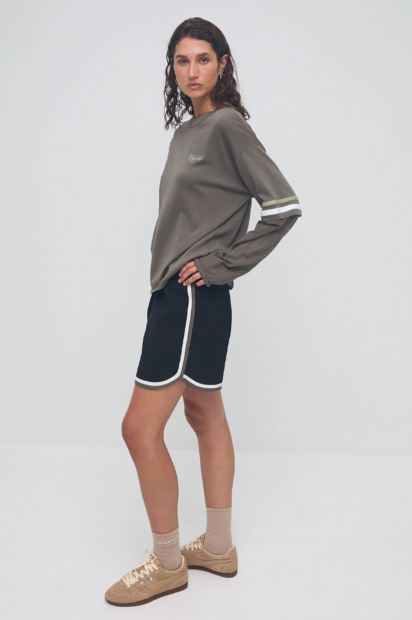 The Organic Mesh Jersey is a relaxed style fashion take on a classic raglan long sleeve and part of our SAMA genderless collection. This midweight style features a mesh sleeve detail with contrasting tapes for added visual interest. Custom Nagnata logo graphics pay homage to 90's street aesthetic.