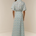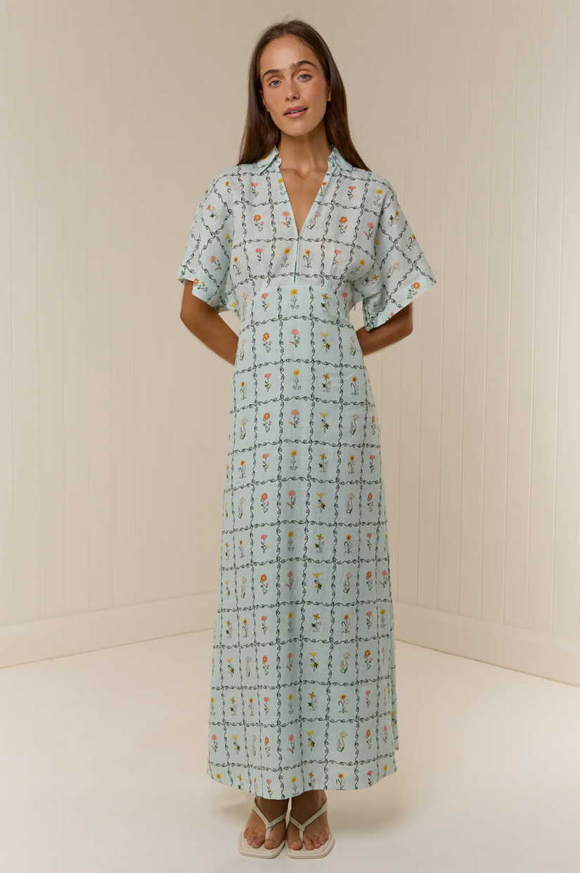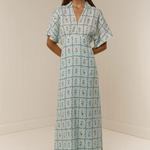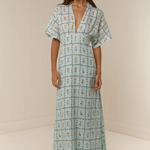 The Jasmine Dress is crafted from Premium Linen, printed in our exclusive Calypso Tile. Offering a relaxed, flattering fit with oversized sleeves that blend in to a slim A-line skirt. The neckline is a flattering deep V-shape that also features a hidden hook and eye for additional coverage if desired.