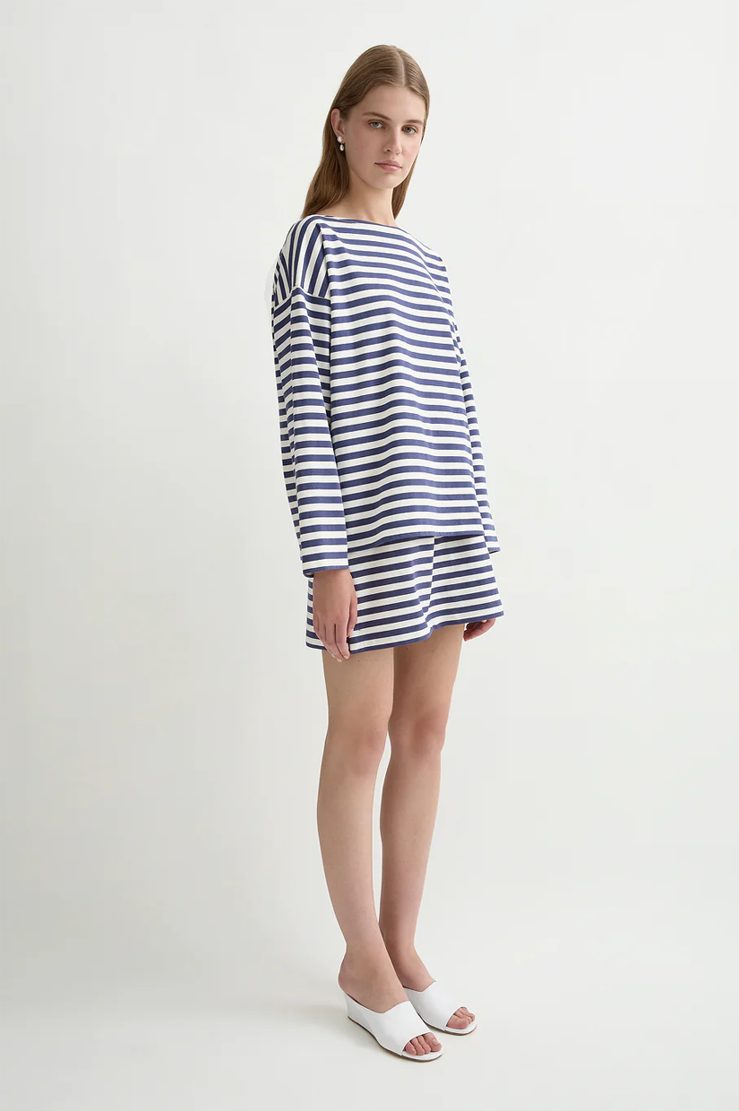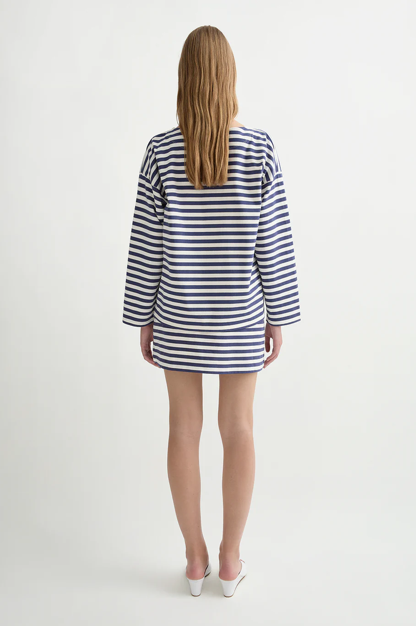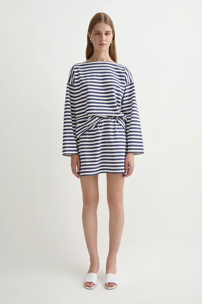 Crafted from 100% cotton, the Haisley Top is patterned in a timeless navy and ivory stripe. Designed for a boxy, relaxed fit, it features drop shoulders and long sleeves. Style yours as a set with the matching Haisley Skirt.