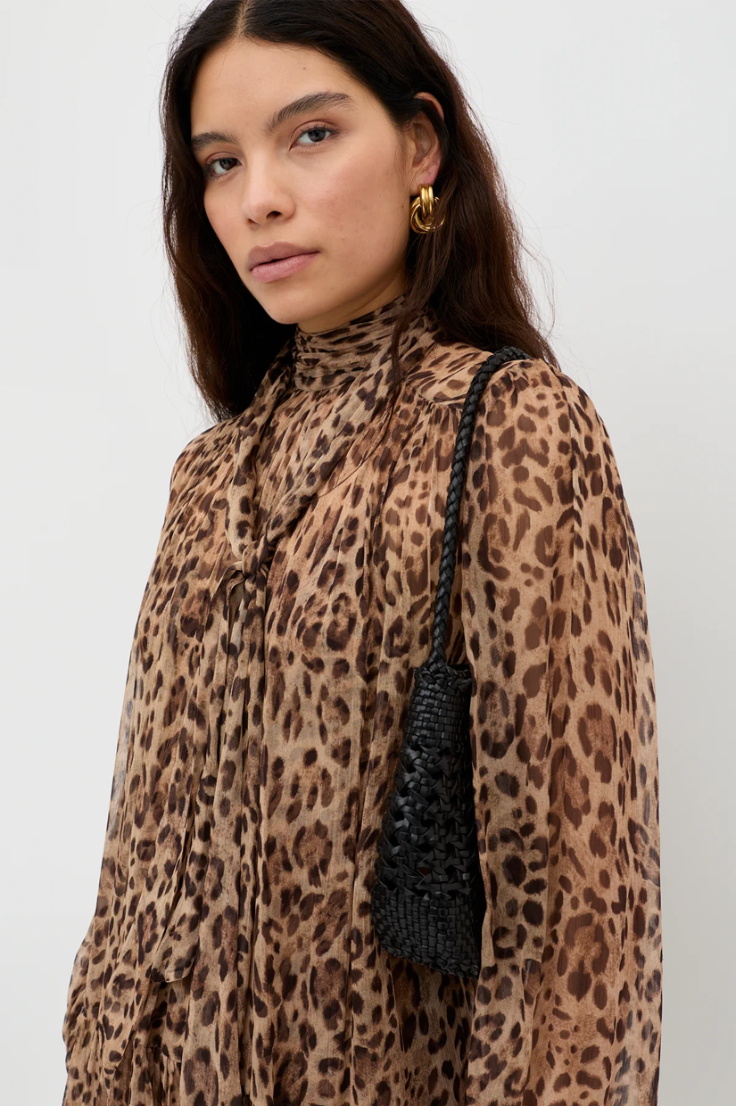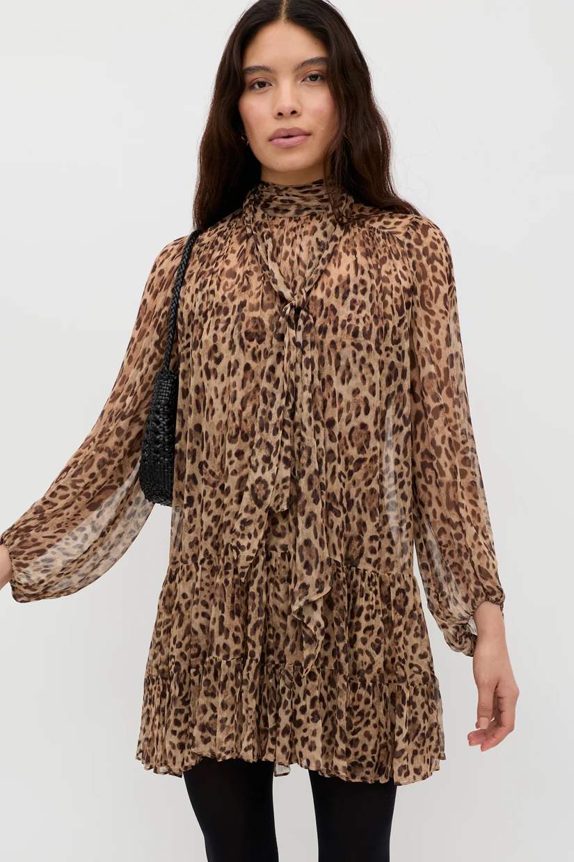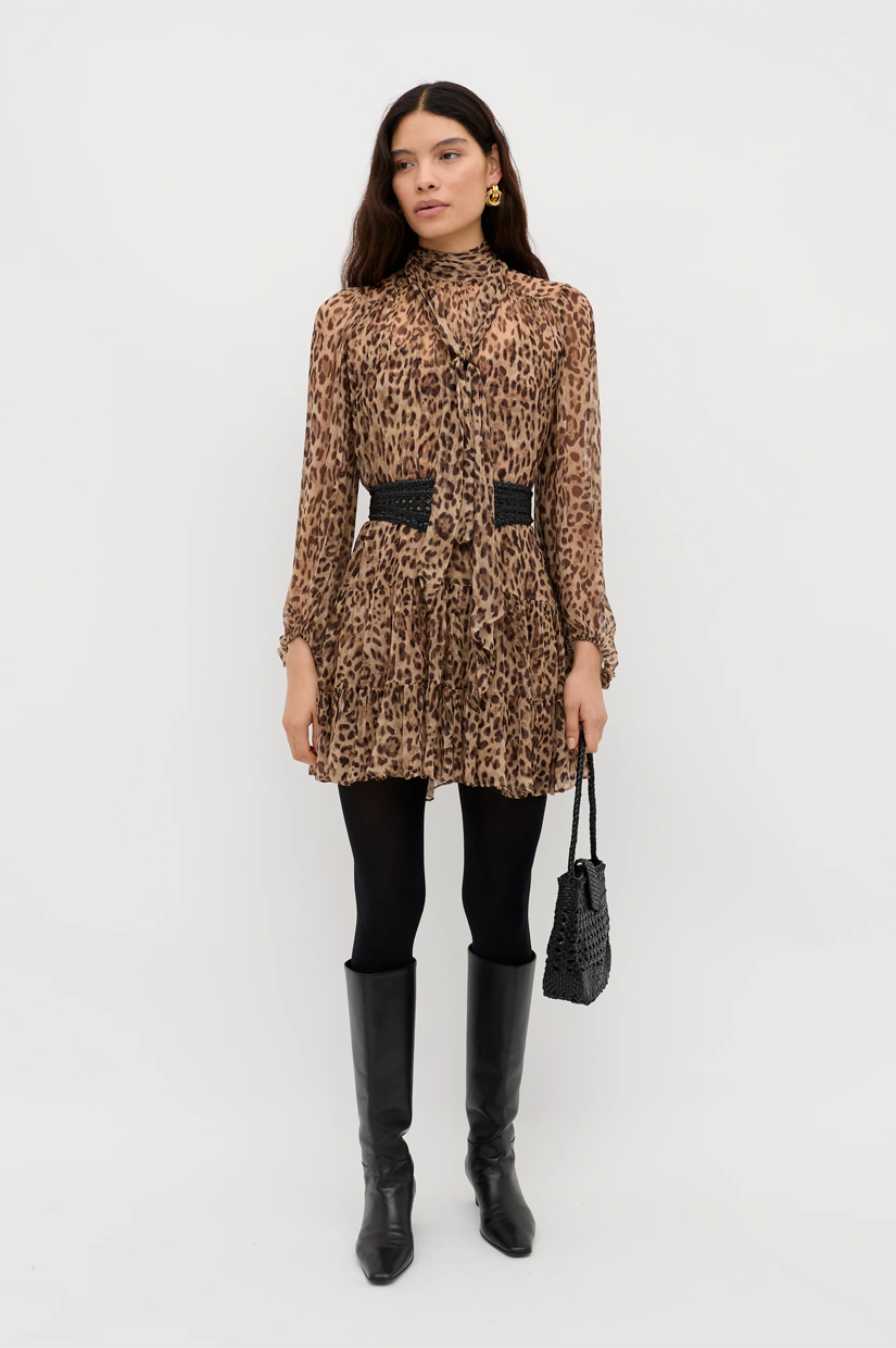 Our new Anaya Dress evokes the vibrant energy of the late- sixties and is a new classic in the making. The flattering high neckline is elegant and brings balance to the short length, while the scarf detail adds a playful element to style your own way. Embrace the volume for a statement look or cinch in at the waist with our Rosella Belt.