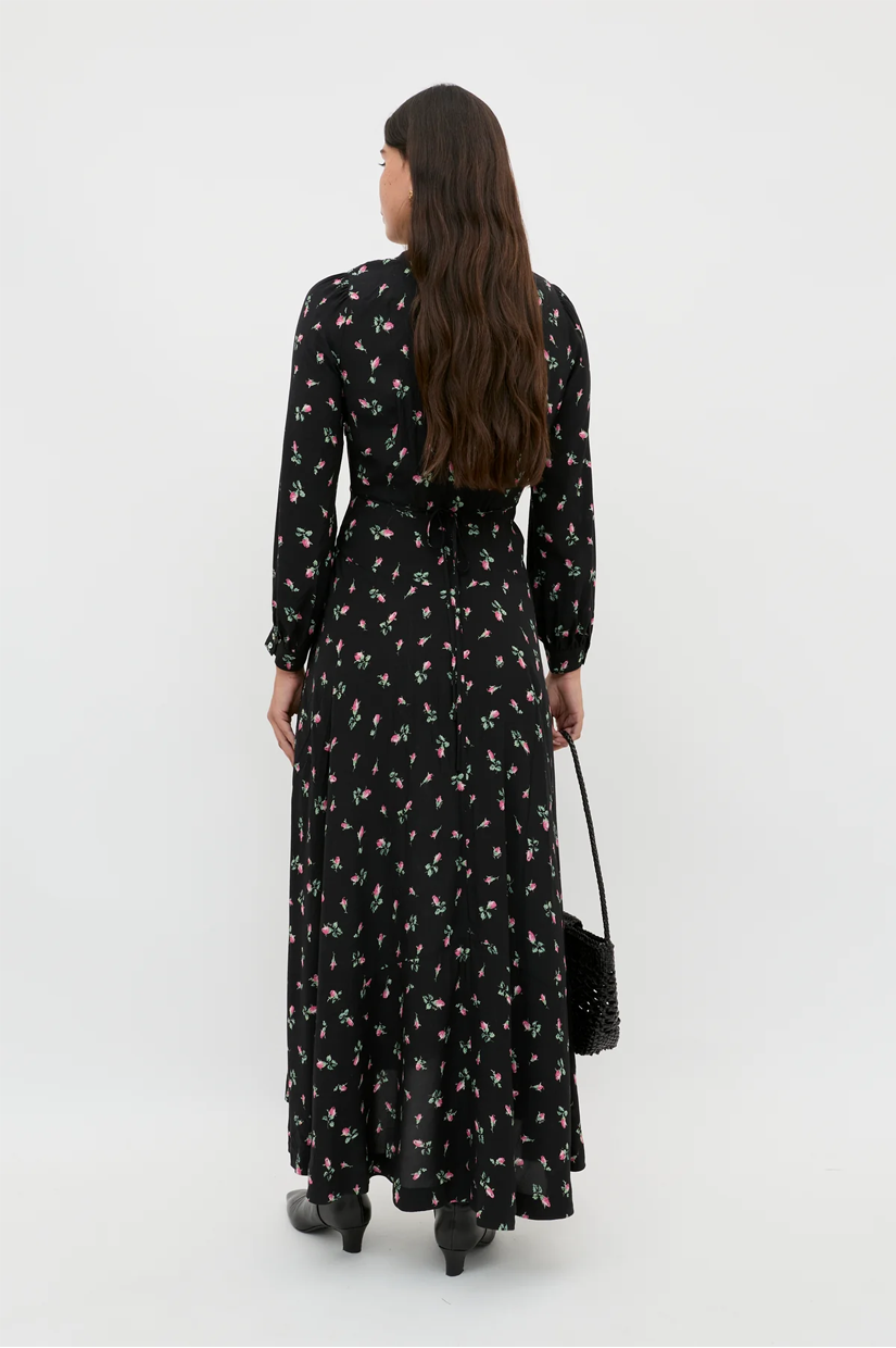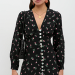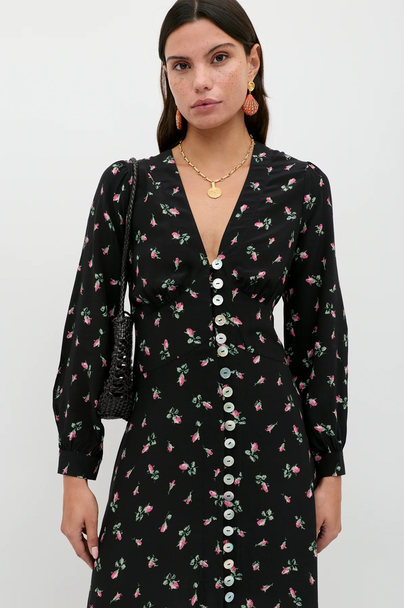Meet Avalyn. Inspired by our beloved Novara Midi Dress but now with long sleeves and vintage-inspired cuffs that create a beautiful billow at the wrists. Crafted from 100% silk, It's the ultimate button-through tea dress.