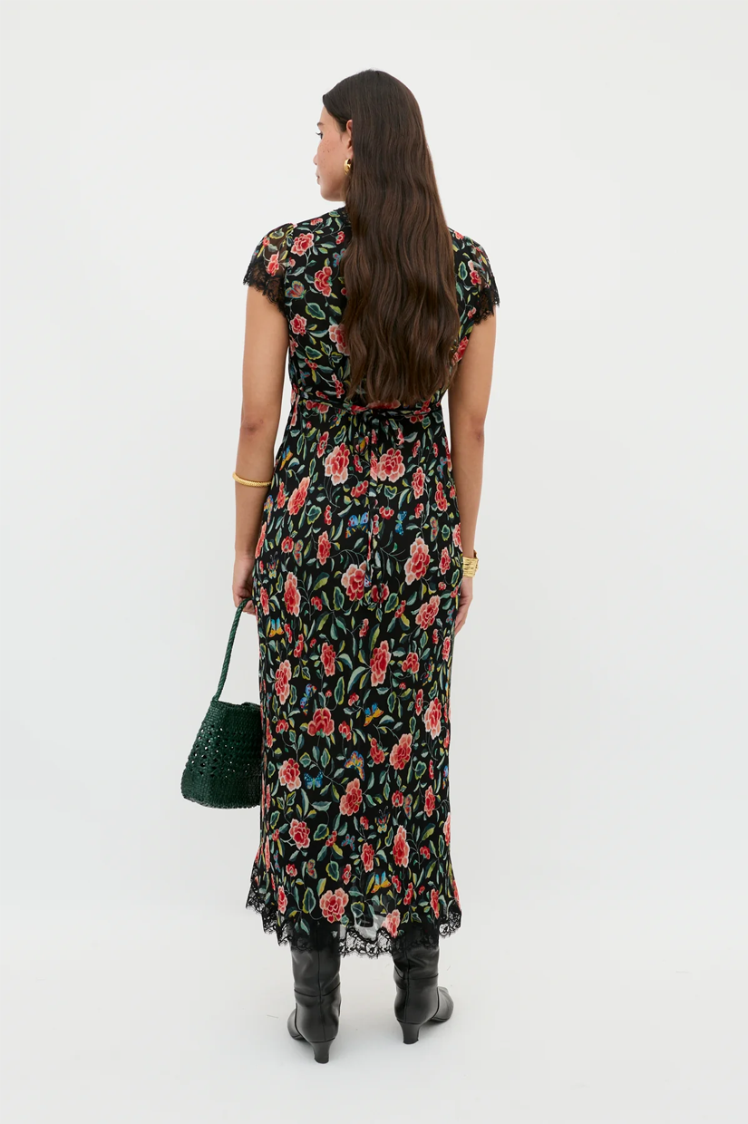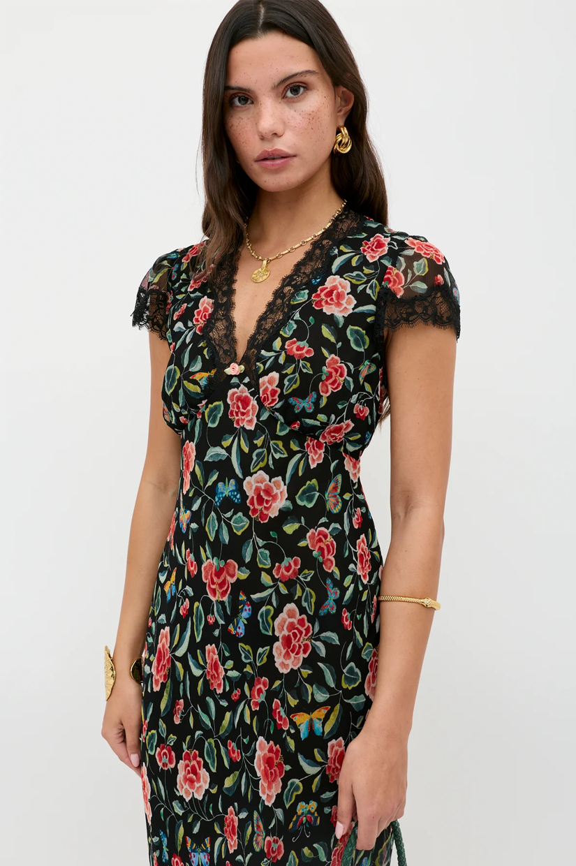 Clarice is based on a vintage nightdress and one of our RIXO icons. Our Butterfly Floral print is cut from a beautiful crinkle chiffon with a romantic drape and an elevated feel, so it works for nights out as well as the magic everyday moments.