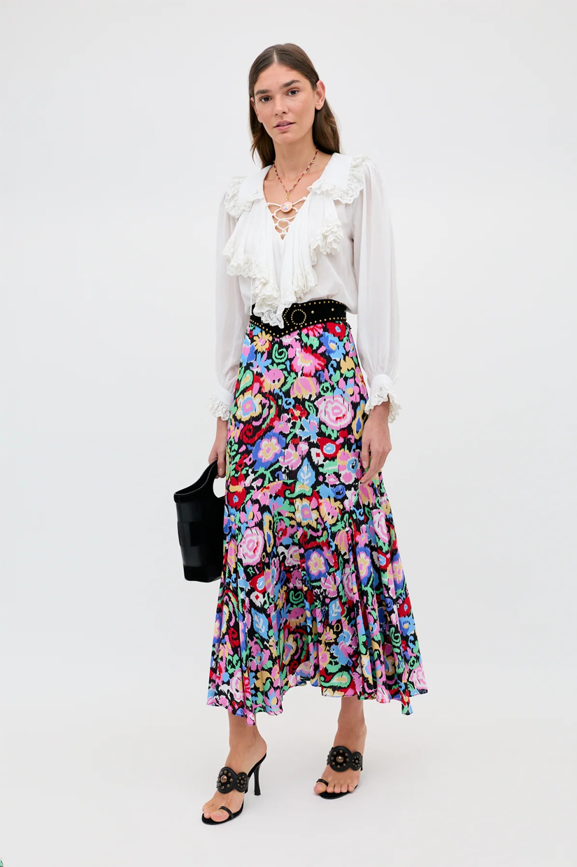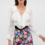 With big, bold romantic ruffles and billowing sleeves in a lightweight, airy cotton voile, Milia is the perfect white cotton blouse. The V-neckline has a tie detail for an undone elegance with a sultry edge. Evoking a sun-drunk summer day on the French Riviera, it’ll pair effortlessly with your favourite RIXO skirts or tucked into your vintage jeans.