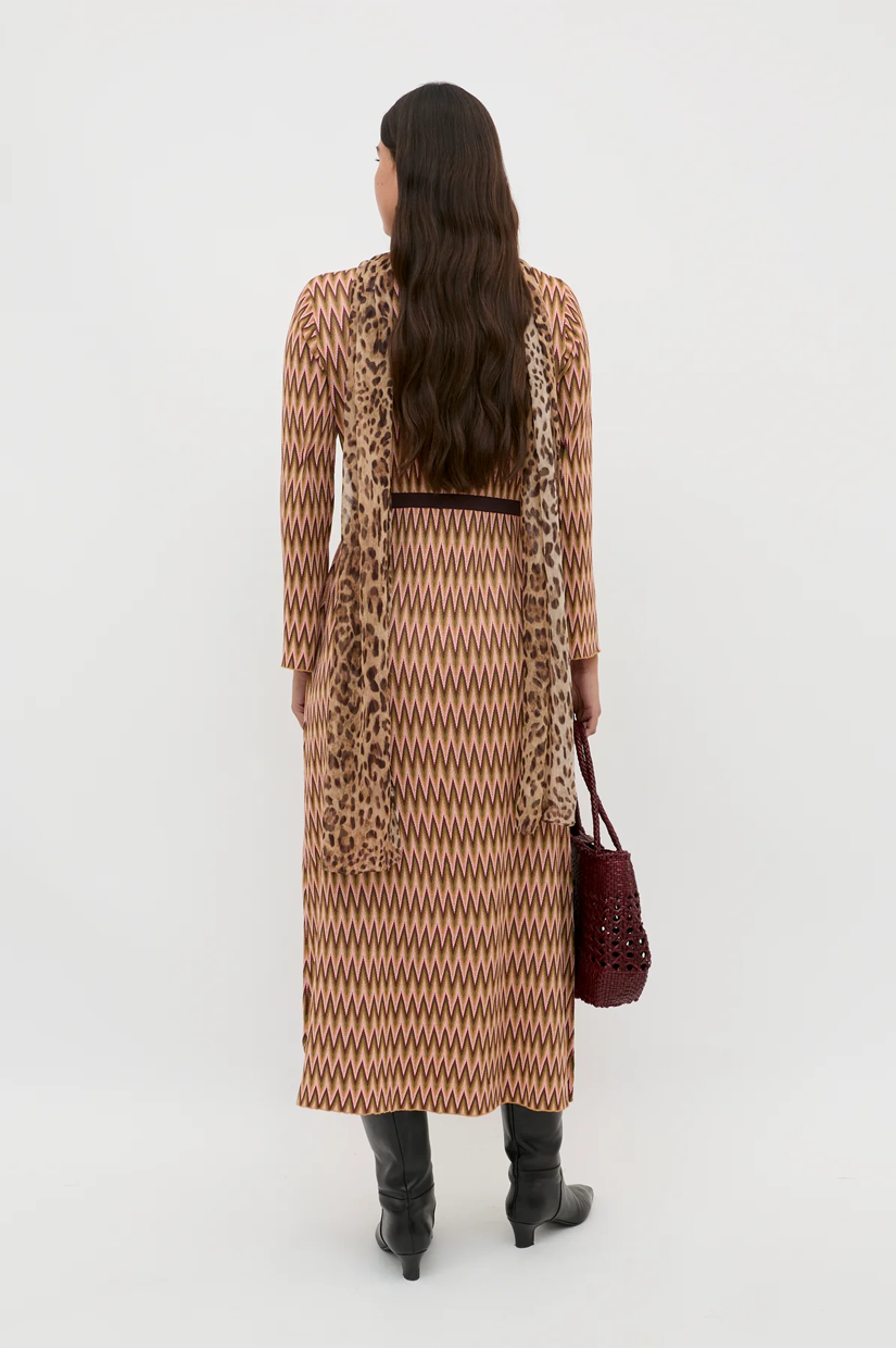 Vintage-inspired and versatile, Pamela is the ultimate knitted everyday dress. Patterned in our abstract Jacquard Multi print, it captures the free-spirited energy of the 1970s. The relaxed sleeves have a subtle bell shape and the V-neck with tie detail is beautifully flattering. Pair with our Rey boots of a timeless look that’ll take you from work to evening plans with ease.