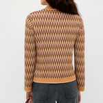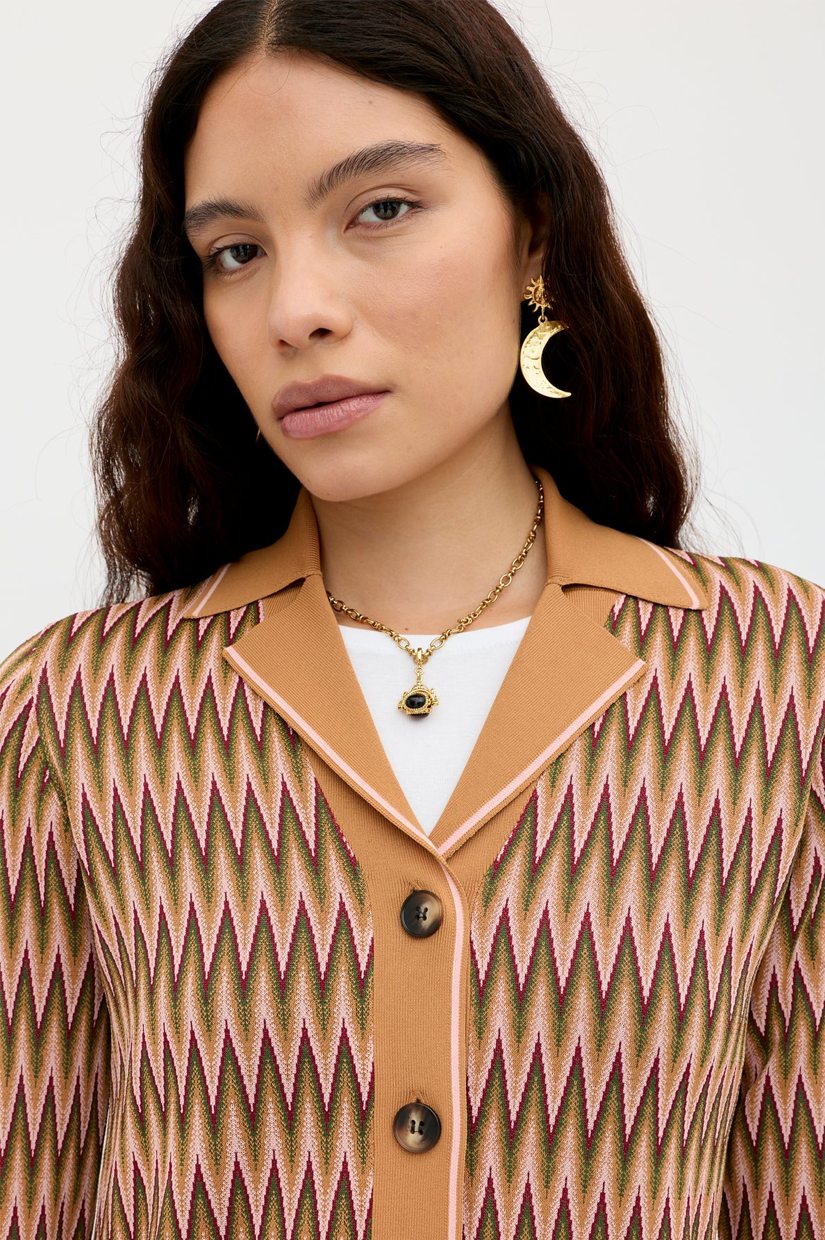 Inspired by our Apollo Cardigan, Quinley features a similar, asymmetric print that captures a 1970s spirit but is cropped at waist. The warm colourway is versatile and perfect for this season and beyond. Style it over a white blouse and jeans for a vibrant every day look, done the RIXO way.